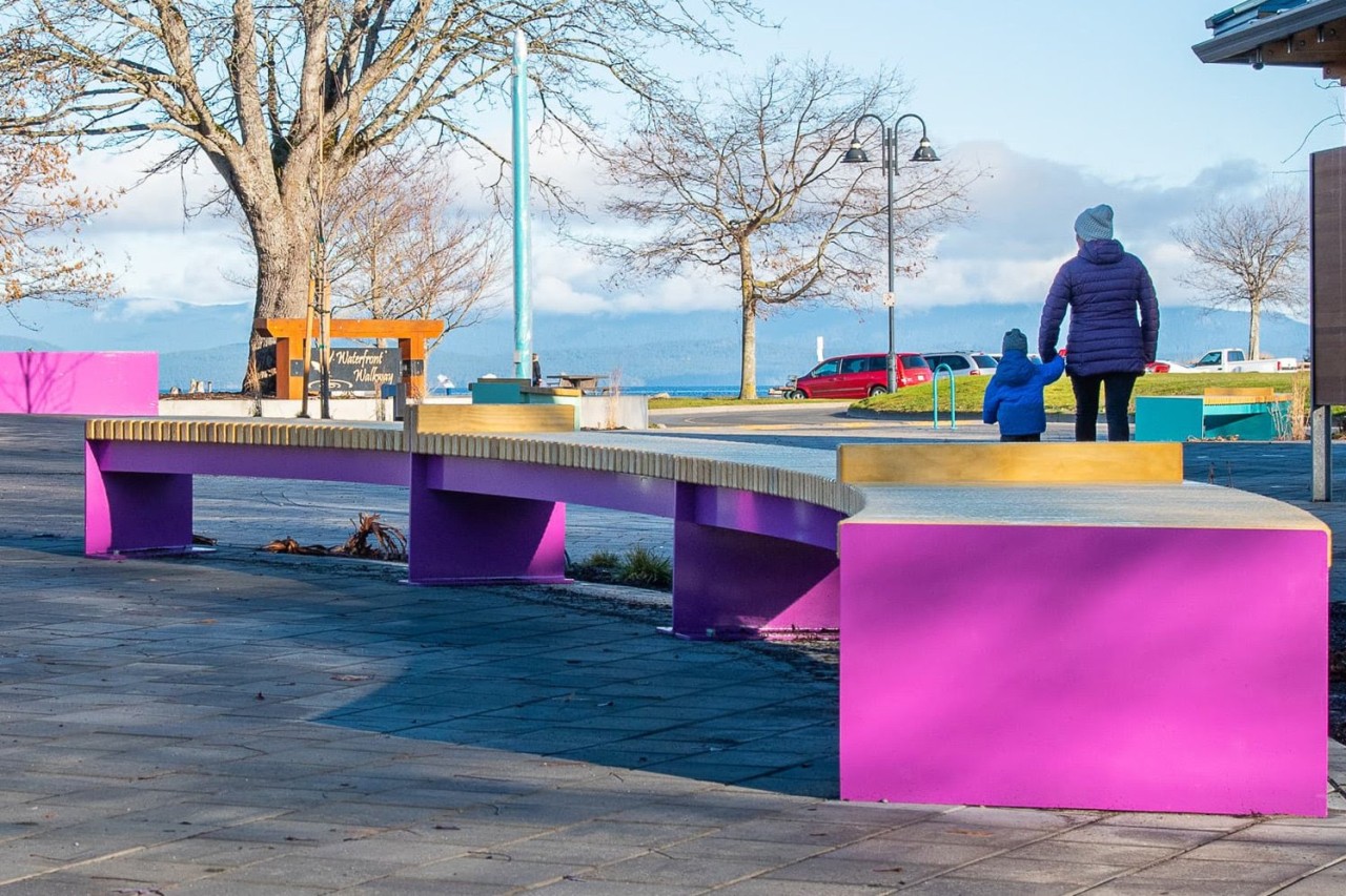 So not only do we have full control of quality every step of the way, we also have the ability to inject site specific modifications at any stage. Whether you need one bench leg out of three shortened because of a landscape feature, or a logo embossed into the aluminum of a surface, or a custom radius curved bench, or a rainbow of colours, or a metal backrest routed into a complex landscape feature.