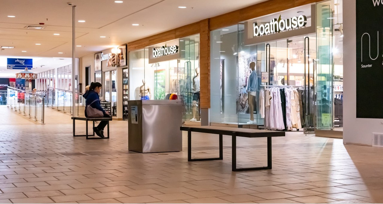 Heather and her mall group of 25 other locations have specified Wishbone products in the past and word has spread that our site furnishings are not only durable but also have style! The Skyline Bench she and her team chose to spec in this latest installation is a testament to that. The Skyline bench (as well as many others) are able to be customized to different shapes, configurations and sizes. And now that we offer over 30 powder coating colours and a variety of plank colours, clients can match their site furnishing to their decor easily.