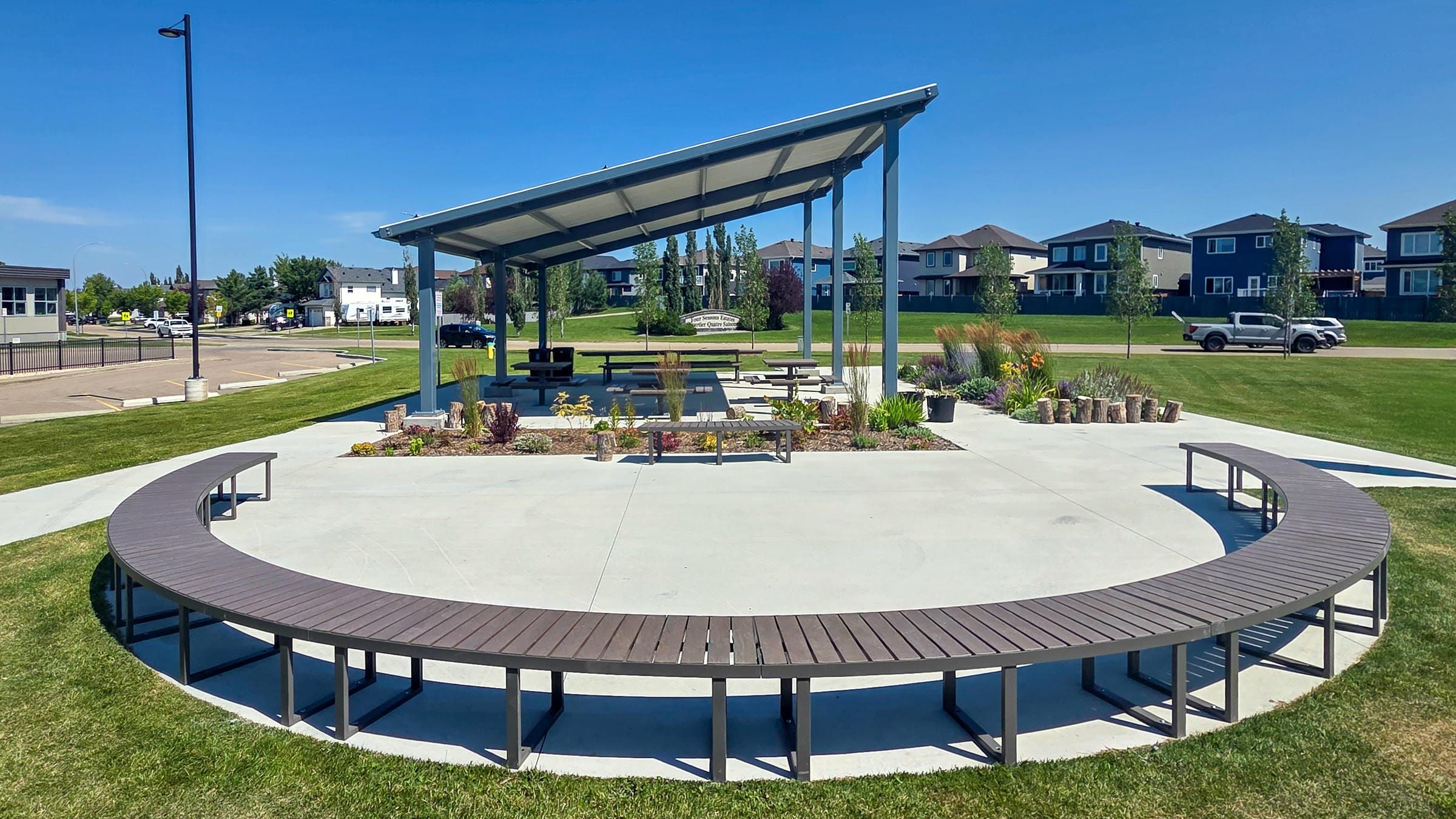 Two years ago, our School's Outdoor Classroom (École Champs Vallée School in Beaumont Alberta) received two Parker Picnic tables as a donation from a local family. We've been consistently impressed with how well this furniture has withstood both the elements and student use. When it came time to furnish the rest of our project, we knew immediately that we wanted to work with Wishbone Site Furnishings.