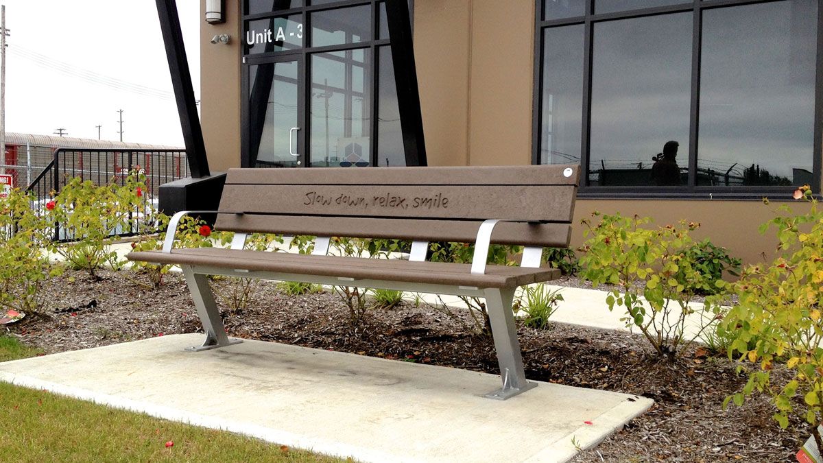 Custom routering is a relatively low cost way of providing non-obtrusive visuals or branding. Logos, phrases, sayings, dates signifying an event, and fairly intricate designs can be routered directly into the recycled plastic lumber. Unlike with wood, routering into plastic doesn’t affect the integrity of the material. Check out some of the custom routered designs in the gallery!