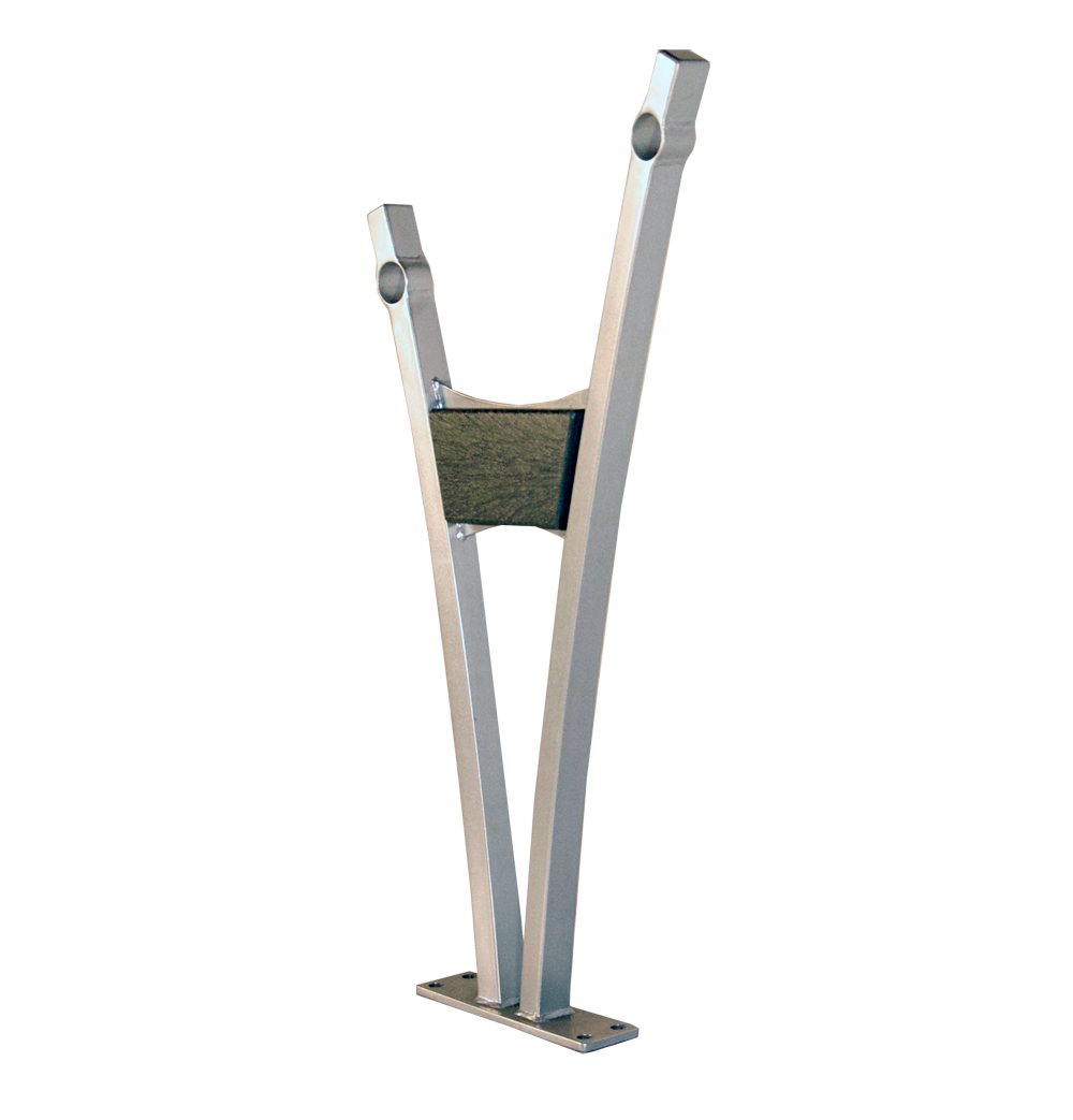 Like the Turisno park bench and waste receptacle, the Turisno bike rack blends form and function. The innovative “V” design allows bicycles to be locked at different heights and angles depending on the user’s preference. The plastic lumber slats on either side of the center span prevent damage to both the rack and the bicycle frame.