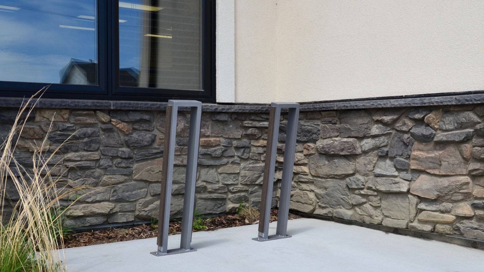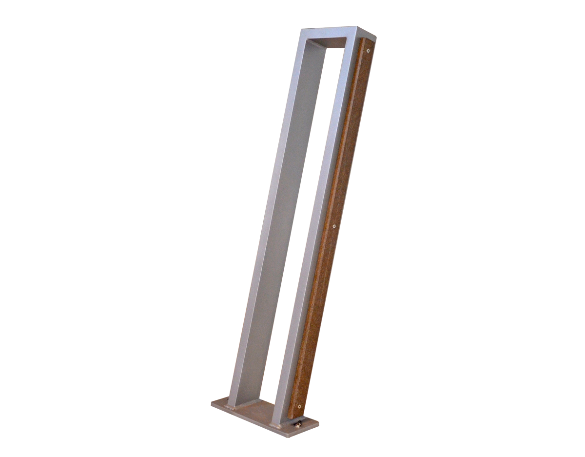 This design takes its cues from the Urban bench in the same series. The angle matches the same angle as the backrest on the bench.  The open design provides a range of ways to lock and secure bicycles.  Durable aluminum frame and powder-coated finish prevent scratching and corrosion over time.   Can be installed in virtually any configuration depending on the application. The recycled plastic lumber acts as a buffer between the bicycle frame and the bike rack preventing wear and tear on both the bike and the bike rack.  Perfect in environments where the use of bike racks is seasonal.  Simply add and take away as needed.
