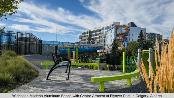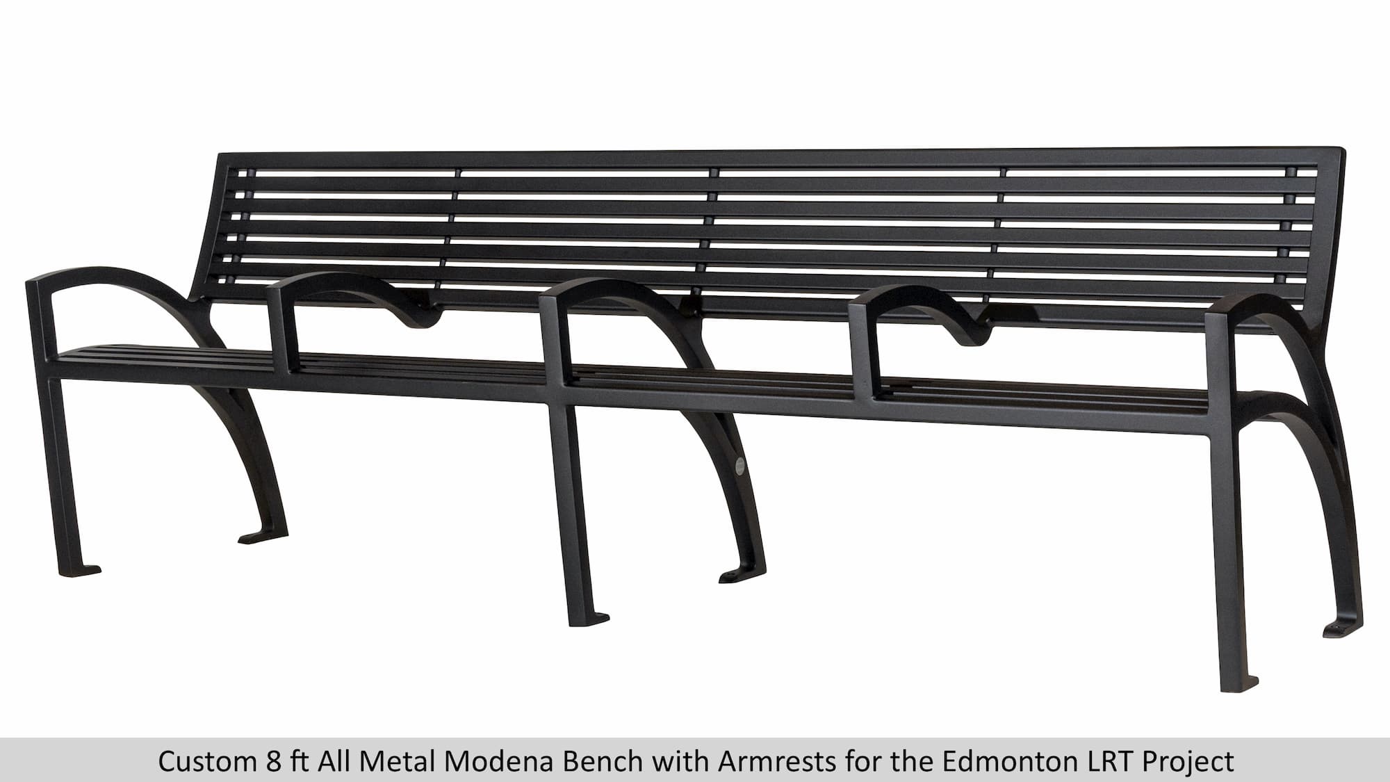 The Modena All Metal Park Bench has a sleek and stylish look where the desire is to bring a cool and modern feel to an outdoor space. The aim of this product is to maintain the contemporary look of the standard Modena while also suiting applications requiring all-metal construction. We manufacture our own castings used on the leg ends, from 100% recycled aluminum car and truck rims. Using the full weld system allows the product to withstand heavy use, and whatever the weather throws at it while maintaining a competitive price point. Style and strength have never looked so good!