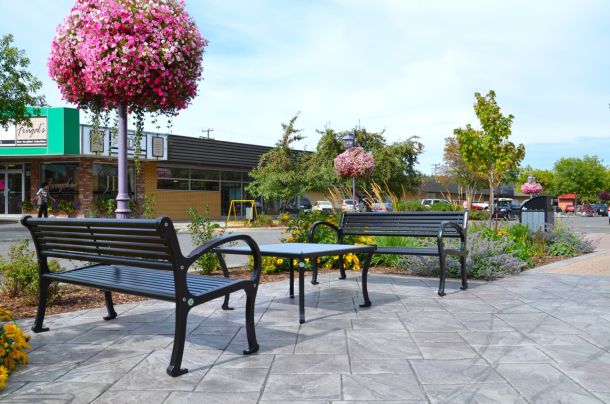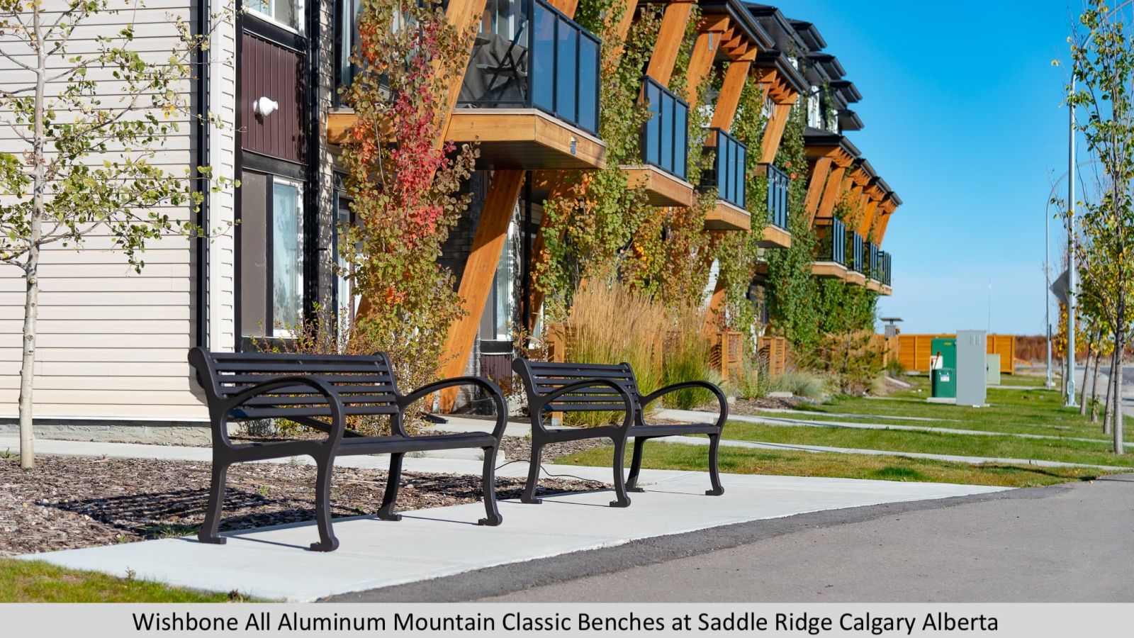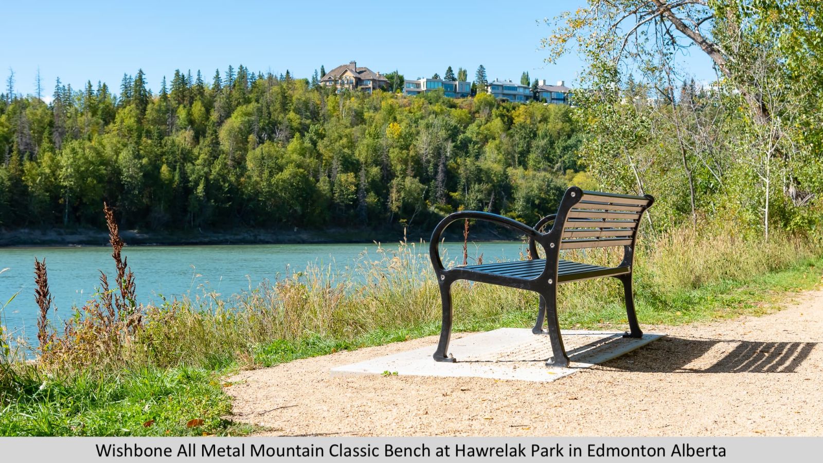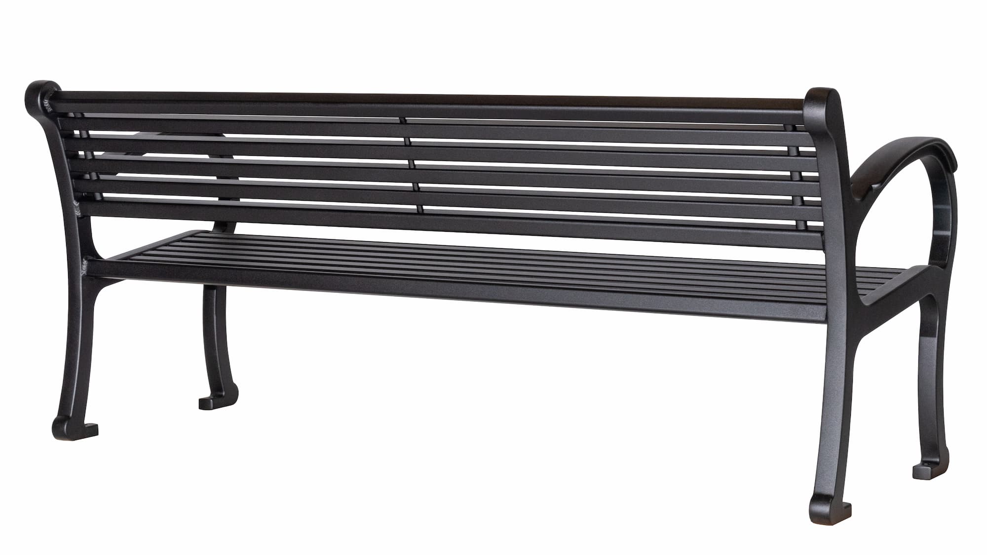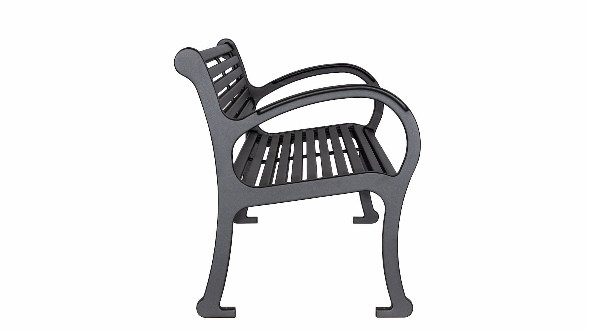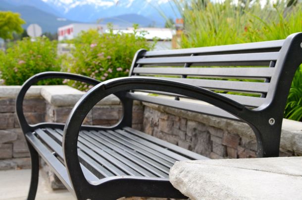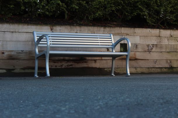 Large armrests allow people to nestle into the corner while the top of the armrest supports your arm in a natural way.  The flat surface on the armrest design also assists in lowering into and getting up out of the bench making this model extremely popular in settings such as seniors’ residences. Its robust style using full weld construction also makes it a popular choice for rugged and unyielding environments that also demand a bold design scheme. We locally manufacture our own castings used on the leg ends from 100% recycled aluminum car and truck rims, making our benches greener and better for the environment.