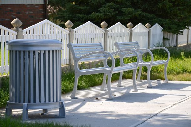 All-metal benches are very popular. The primary reason is that they discourage graffiti as the small metal slats represent a very small canvas for ‘art’.