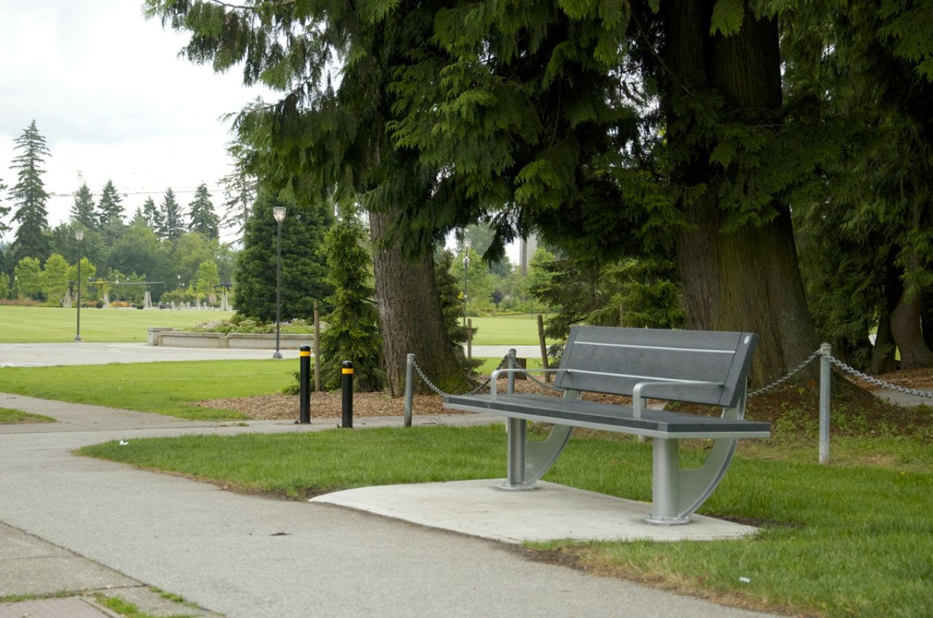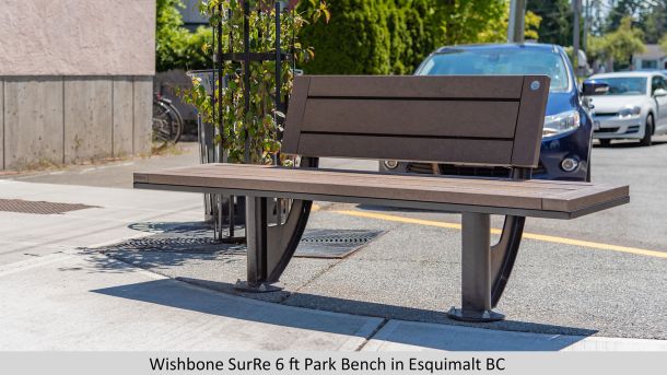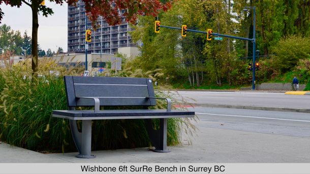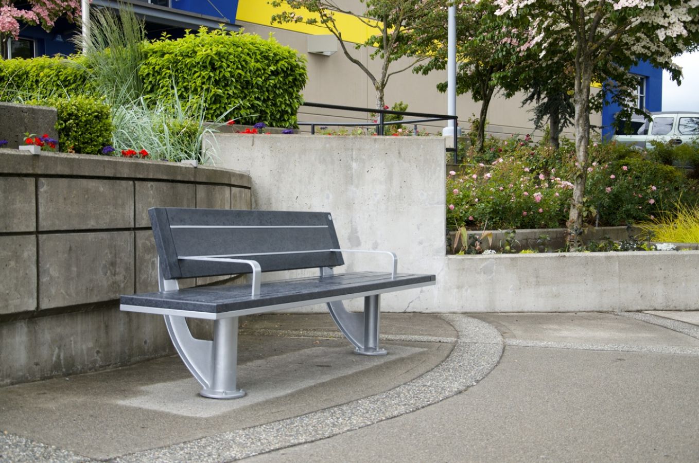 The SurRe was a developed hand-in-hand with the City of Surrey. Their request was for a bench that had a high recycled content and a distinctive design that would set it apart. The custom cast leg ends, clean lines, picture framed recycled plastic lumber, and minimal board gapping combine to make a truly unique bench. This bench was on display at the City Hall for 6 months and got a unanimous thumbs up from the general public. The extensions on either end provide a variety of different seating options and surprisingly, encourages folks that don’t even know each other to actually sit on the bench at the same time. The backless portion and the armrest seem to create an invisible divide. This model commands attention, whether as a standalone piece or as part of a larger set. The name was created by combining “Sur” for the City of Surrey and “Re” for Recycled. Available in 6 to 9-foot lengths.