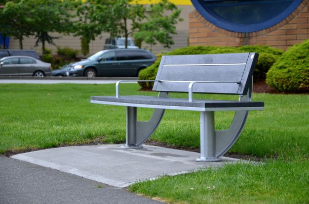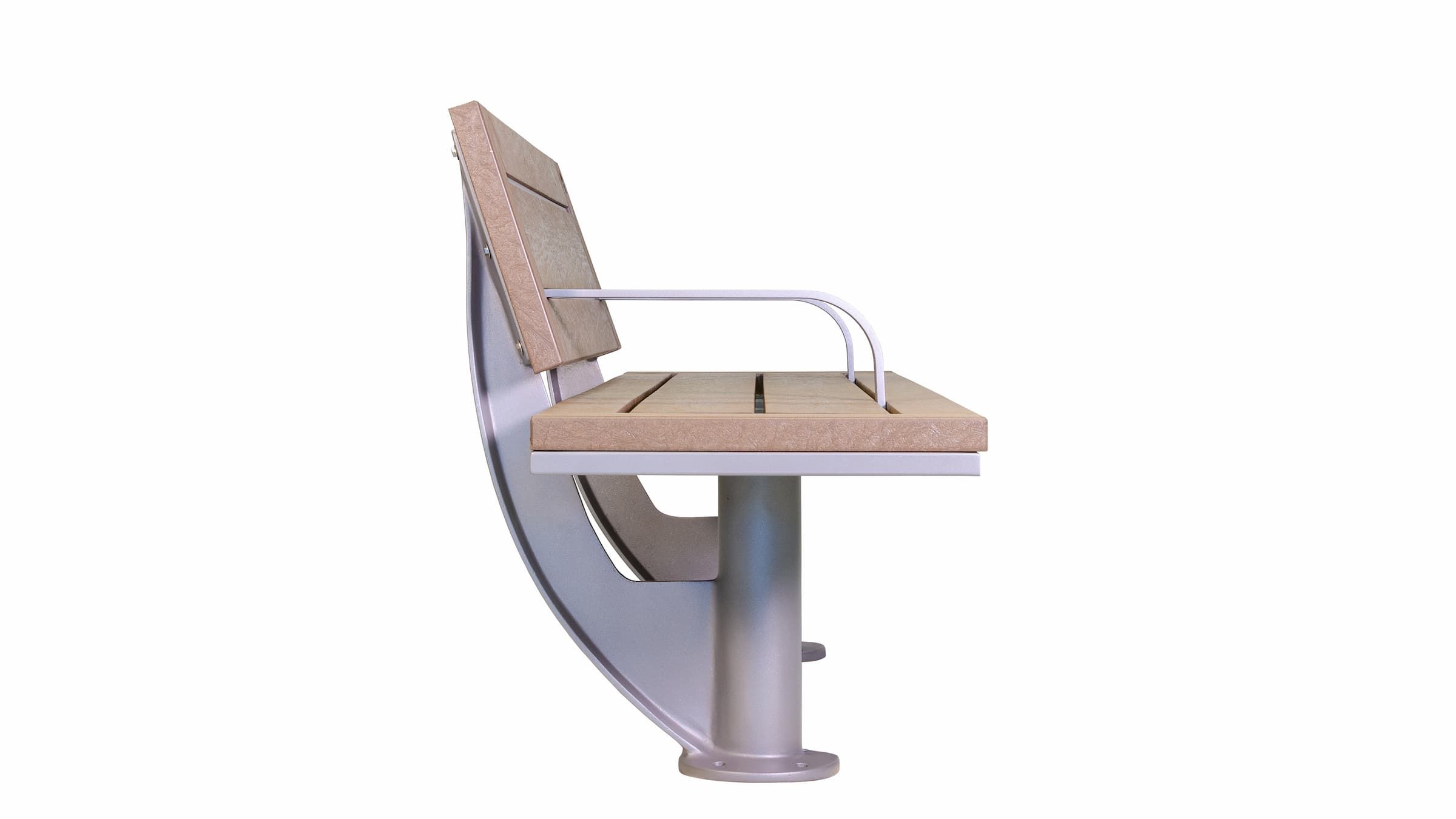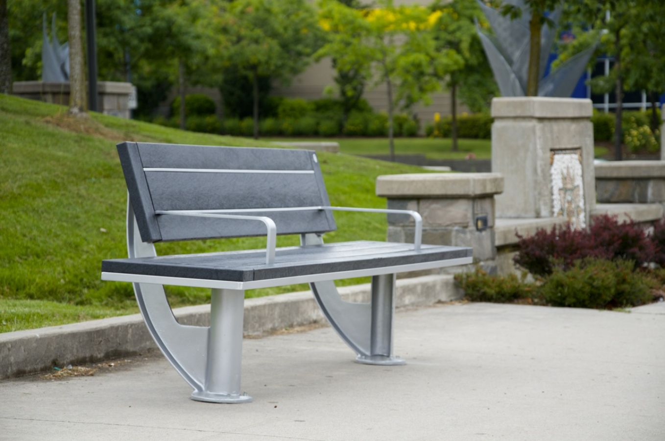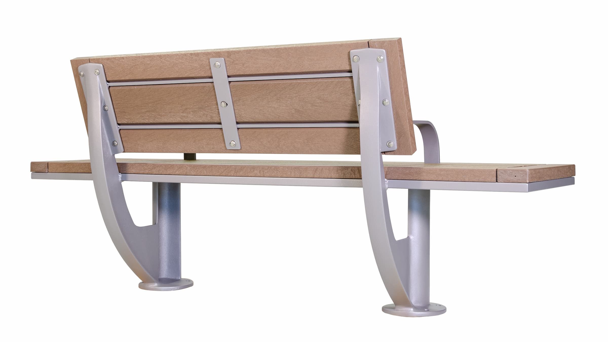 The SurRe was a developed hand-in-hand with the City of Surrey. Their request was for a bench that had a high recycled content and a distinctive design that would set it apart. The custom cast leg ends, clean lines, picture framed recycled plastic lumber, and minimal board gapping combine to make a truly unique bench. This bench was on display at the City Hall for 6 months and got a unanimous thumbs up from the general public. The extensions on either end provide a variety of different seating options and surprisingly, encourages folks that don’t even know each other to actually sit on the bench at the same time. The backless portion and the armrest seem to create an invisible divide. This model commands attention, whether as a standalone piece or as part of a larger set. The name was created by combining “Sur” for the City of Surrey and “Re” for Recycled. Available in 6 to 9-foot lengths.