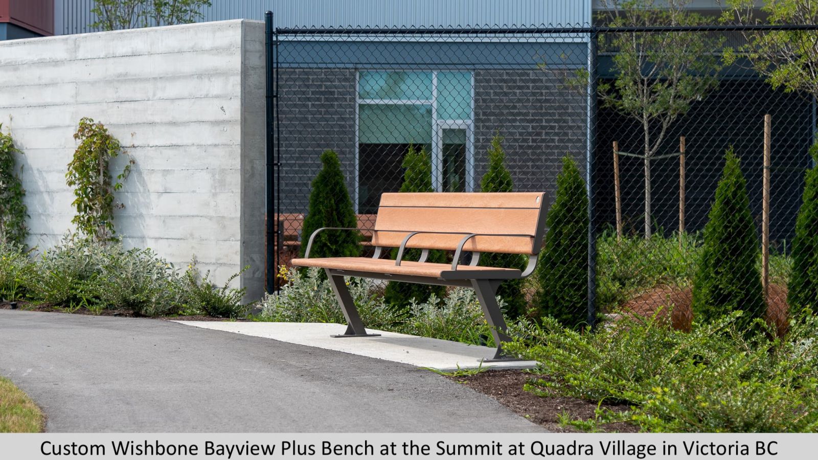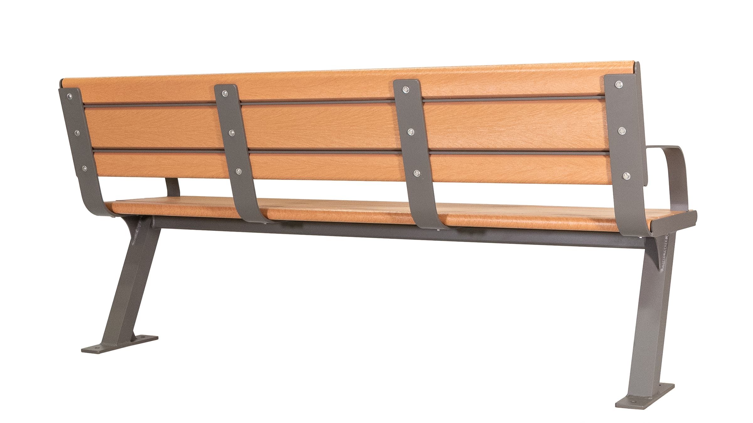 The Bayview Plus Park Bench borrows design cues and practical features from our Bayside Bench, while maintaining the very popular Bayview style. Capped ends on the boards provide a cleaner look, and finish off the bench nicely. Armrests and leg ends have been moved to the edges of the bench to provide additional comfort, ADA accessibility and overall seating capacity. The gaps on this bench have been eliminated and instead filled with metal inset strips that stop debris collecting between the boards, so allows the bench to stay neat and tidy without regular maintenance. The seat height has been increased slightly so it conforms also to ADA accessibility standards. It is that finishing touch that makes this bench really shine.