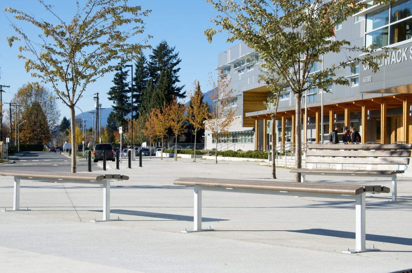 This bench is straightforward, uncomplicated and classy. This modern entry level bench provides excellent value and comfort. The backless design means that users can enjoy the view on both sides. The single pedestal leg is the perfect underscore to simple and timeless design. Available in a wide variety of lengths up to 12 ft.