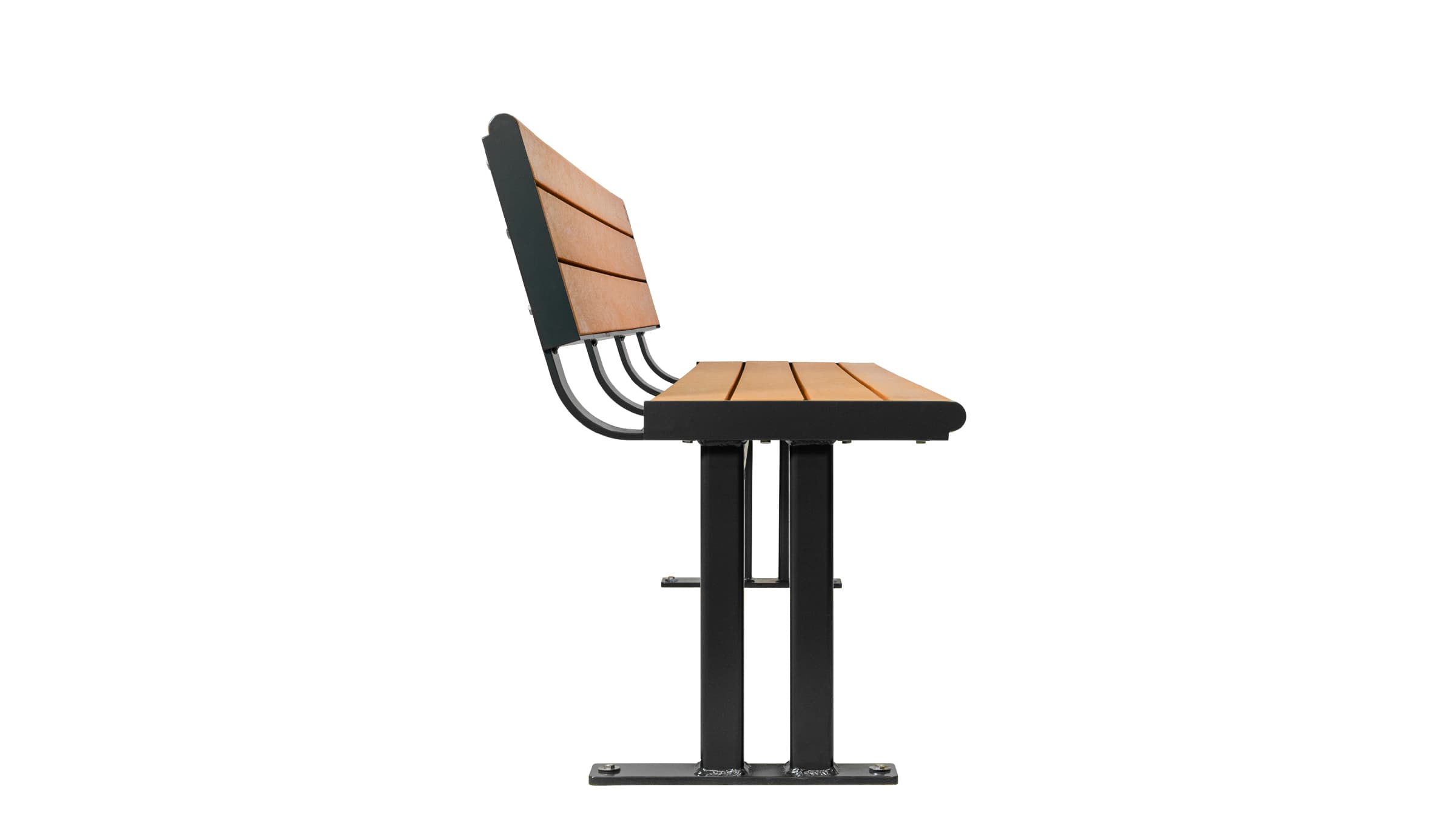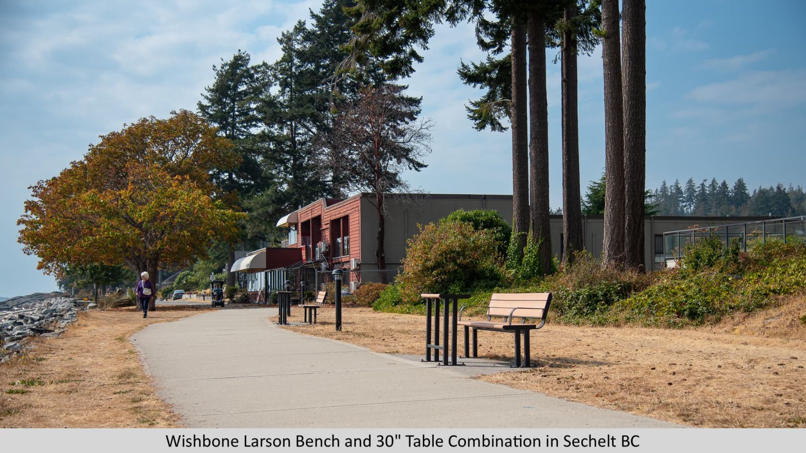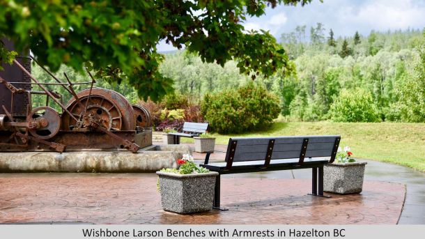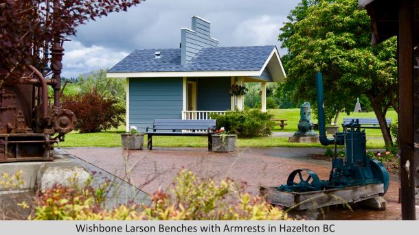 The Larson Bench sports a unique contemporary double pedestal leg design with a stately comfortable seat and back rest. It came about as a result of a ‘happy mistake’ on one of our other benches. (The seat and back supports had been welded on backwards). So, in an effort to salvage the project the lumber was re-spaced and another board was added. This created a new concept and it seemed like the right time to incorporate some new design features such as capped ends and limited board overhang. Voila!! The Larson. As with some of the other products, this bench shares the last name of a close friend. The bench is available with or without armrests and bistro style table.
