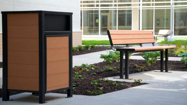Wishbone recycled plastic boards are non-toxic, ultra-durable and low maintenance. They are easy to clean and can be renewed from UV damage. The recycled material is simply excellent for the demands of outdoor commercial furniture while also helping to divert waste plastic from landfills.