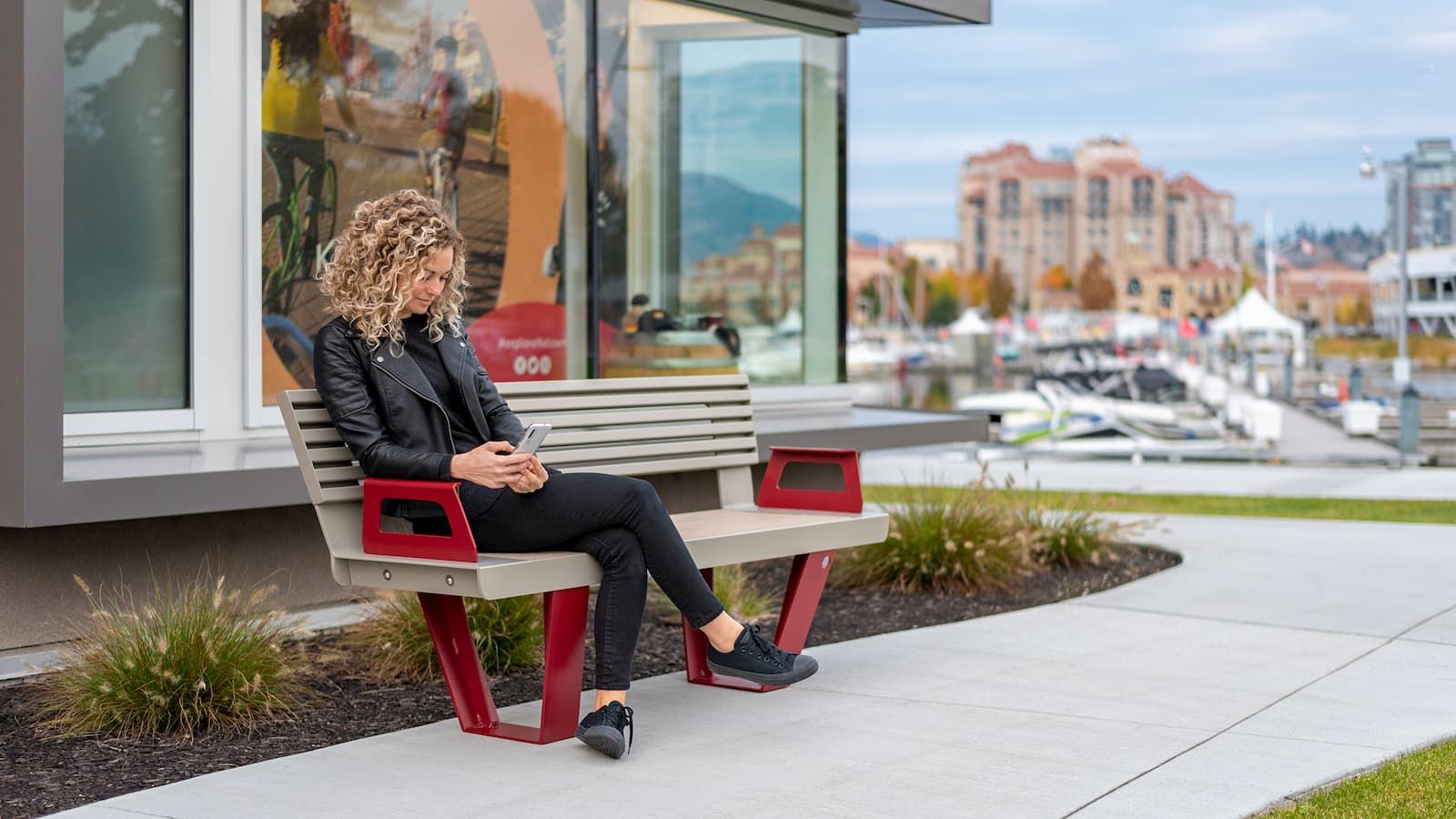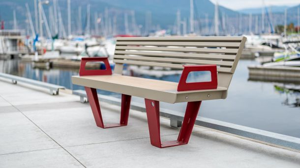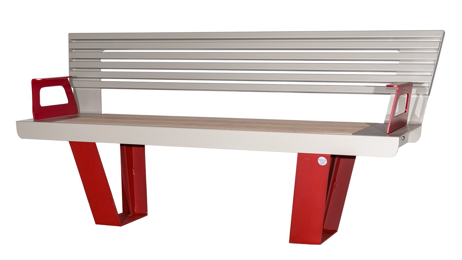 Integral in the design are subtle features that really make this bench unique. A generous seating surface provides comfort for all user groups while the low-profile ergonomically designed backrest is both attractive and tough to tag with graffiti. Sleek armrests, a centre armrest option, and hidden fasteners give the bench a sophisticated and clean appearance from every angle. The most unique characteristic of the bench is the ability to powder coat the armrests, pedestal bases and seat section in different powder coat colours!