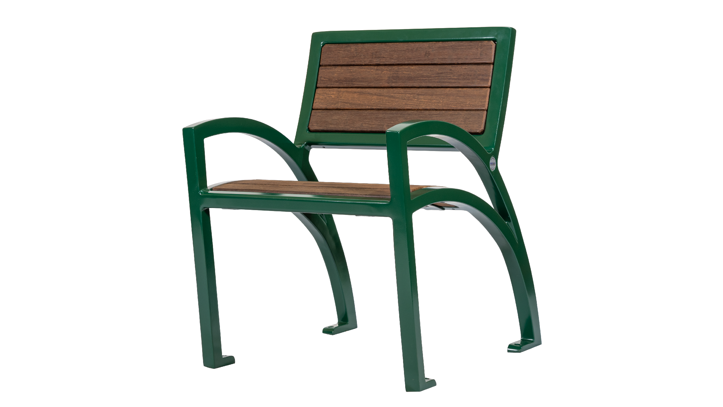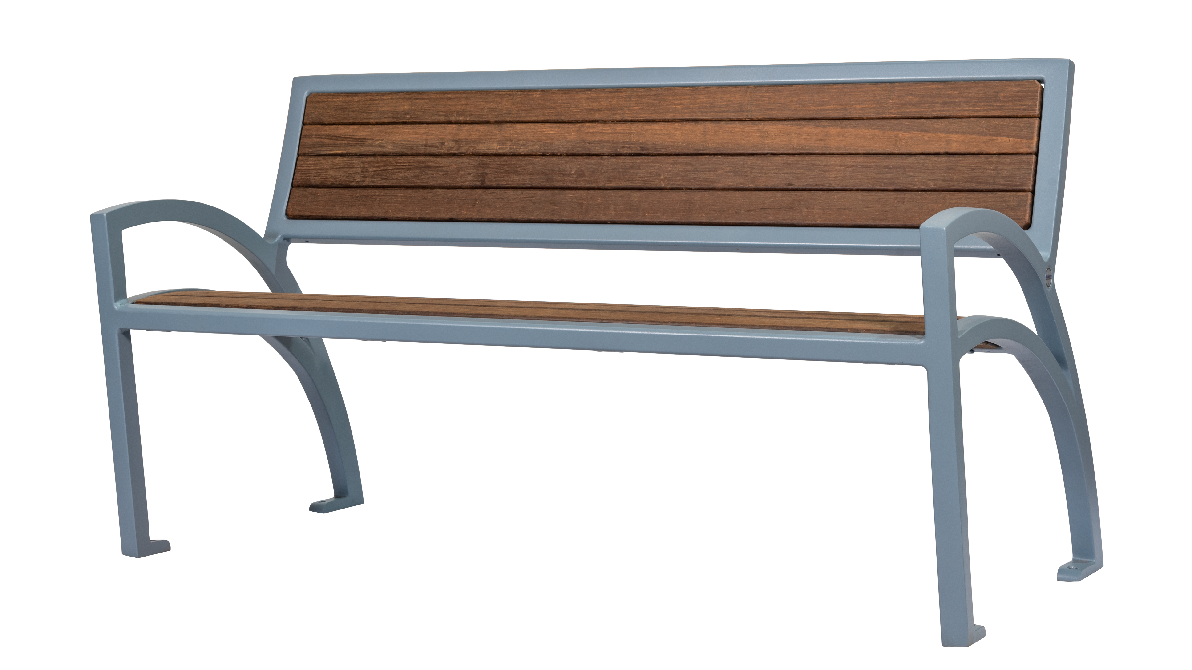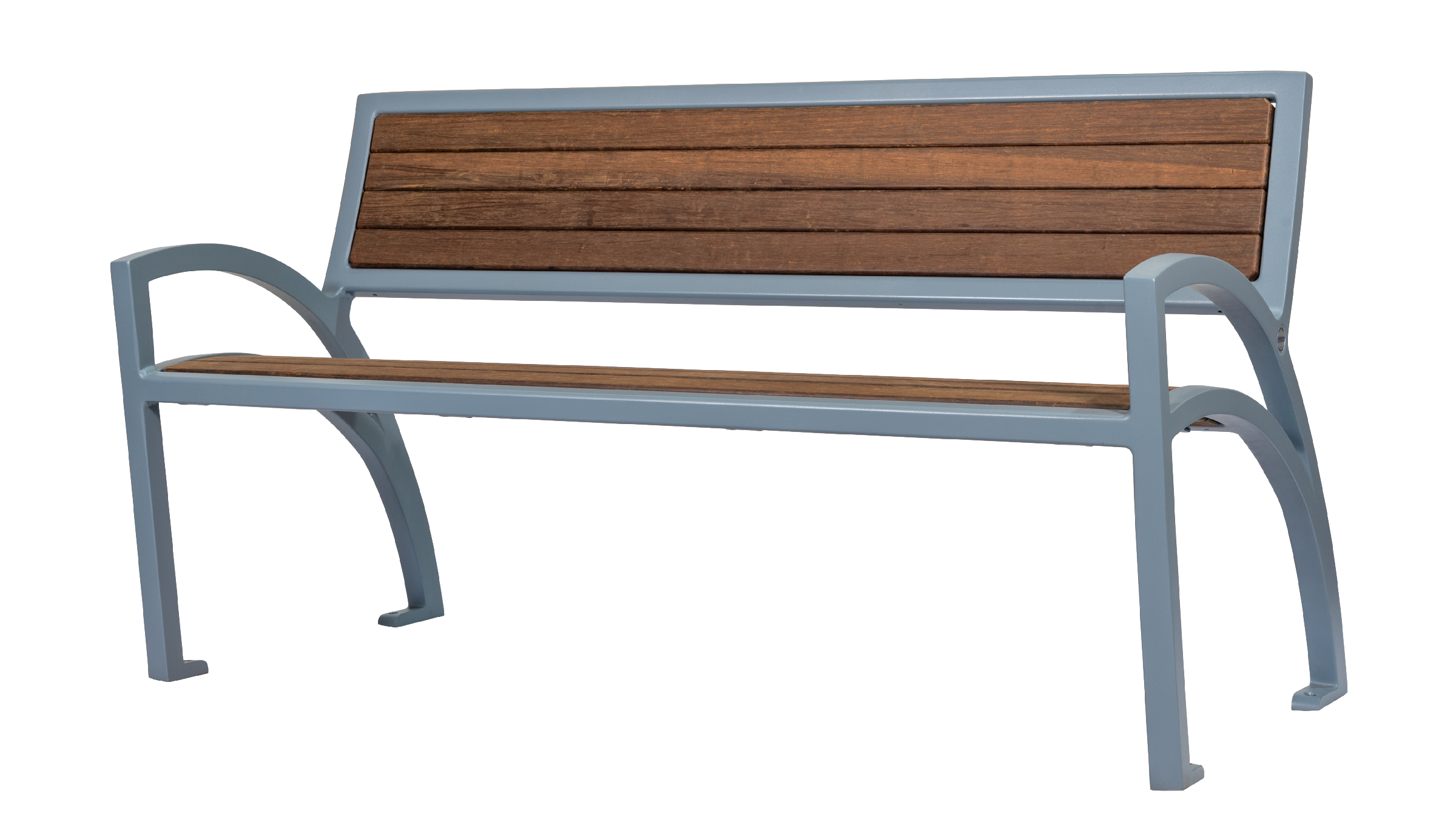 Its standout feature—a continuous, curvilinear one-piece arm and leg design—gives the bench a distinctive profile that immediately invites interaction. A tight board layout combined with intentionally angled seat and back components brings balance between modern geometry and inviting comfort, making it an ideal choice for spaces seeking a non-traditional, eye-catching presence.