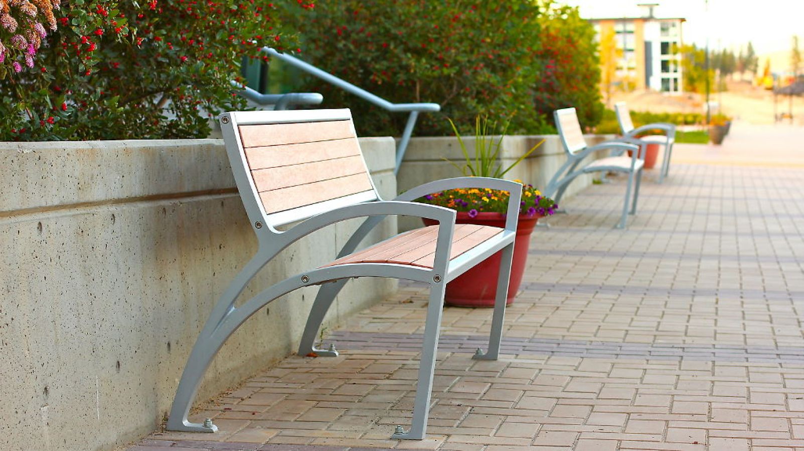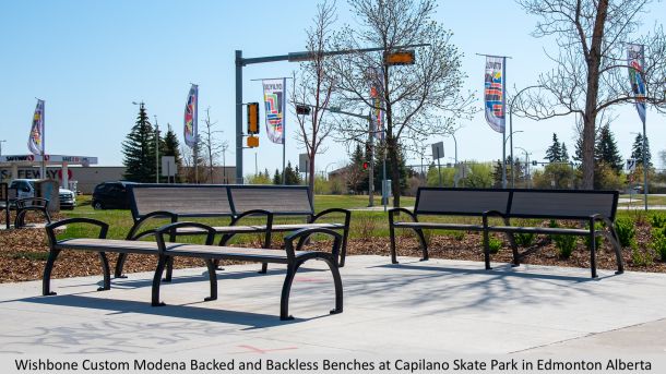 True to Wishbone's commitment to sustainability and durability, the Modena Bench incorporates 100% recycled aluminum in the cast leg ends, produced in-house and finished with a full weld system to ensure lasting strength and structural integrity. Perfect for urban landscapes, campuses, and architectural settings that embrace innovation and sustainability.