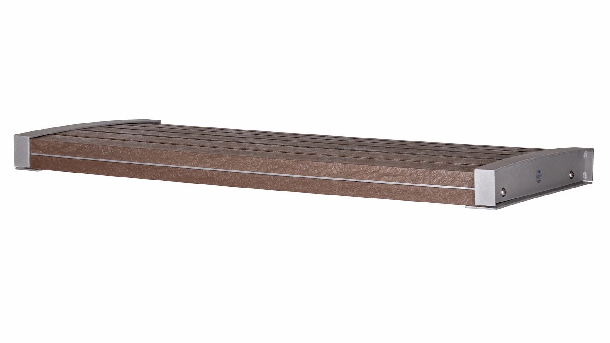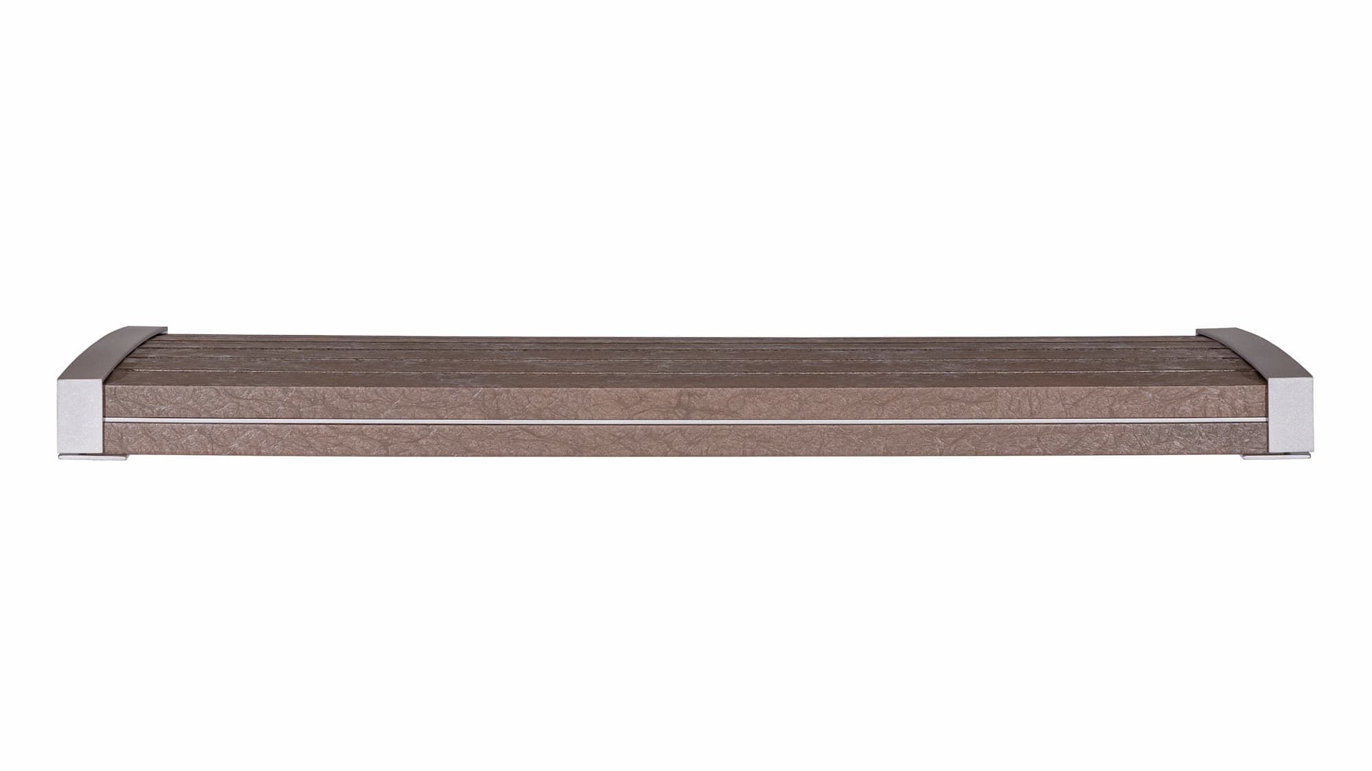 Urban and modern, the Beselt Wall Top Bench adds a clean and contemporary look to most park settings. A unique two-piece design makes the bench a cinch to install. It can either be secured to concrete by using our regular fastening system or our innovative “PEG” system. In both cases the base separates from the main section that holds the lumber. To install using the “PEG” system, separate the base from the main section, mark where the pegs line up on the concrete, drill down, fill with epoxy and then set the pegs into the epoxy. Level and let set. The main section slides over and is secured by the bolts on the ends and the fasteners that hold the boards are hidden. The seat sections can be easily removed for cleaning and removed and replaced if any boards are vandalized. The design is simple, sharp and chic.