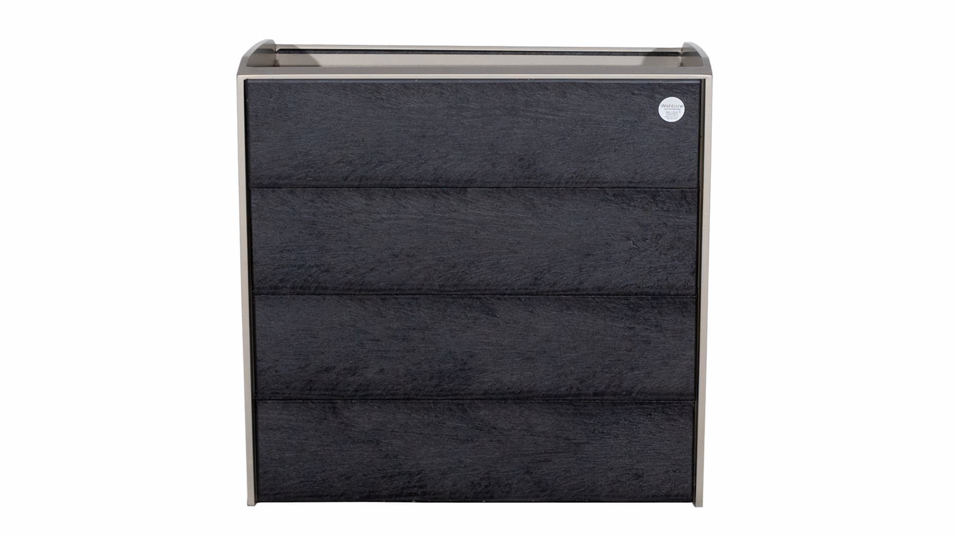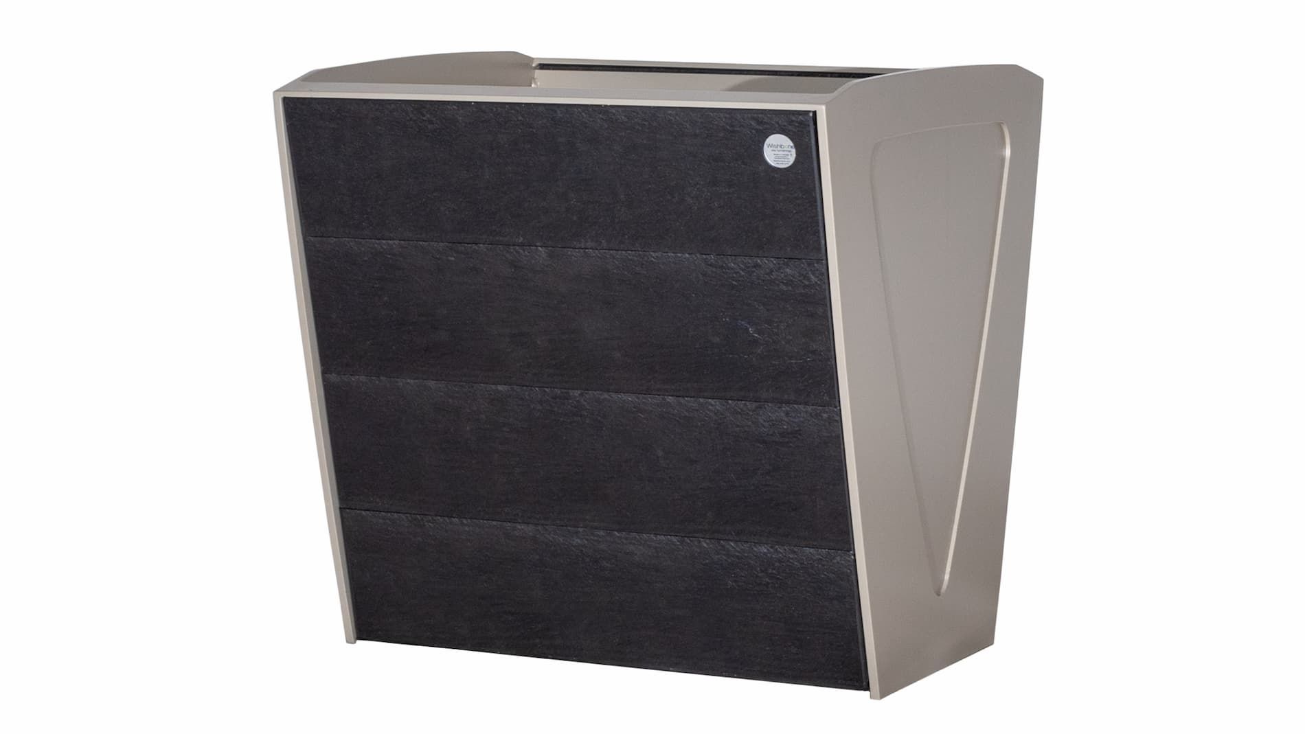 Aesthetics. The tapered look with the right visual mix of aluminum and recycled plastic materials combined with the hundreds of colour combinations available, give this planter has a unique ability to conform to any environment or setting its placed in.