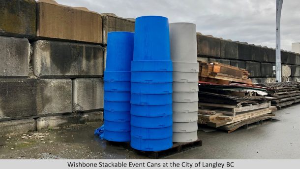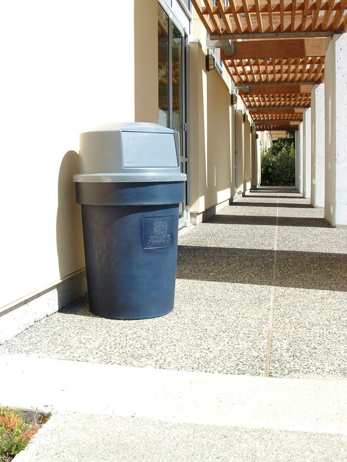 As an option, your event name, city or municipality logo can be imbedded into the plastic and will not fade, peel or wash off. Finally, a standard Rubbermaid Dome Top locks in for a perfect fit. Many Colours Available to differentiate between waste, recyclables and organics.