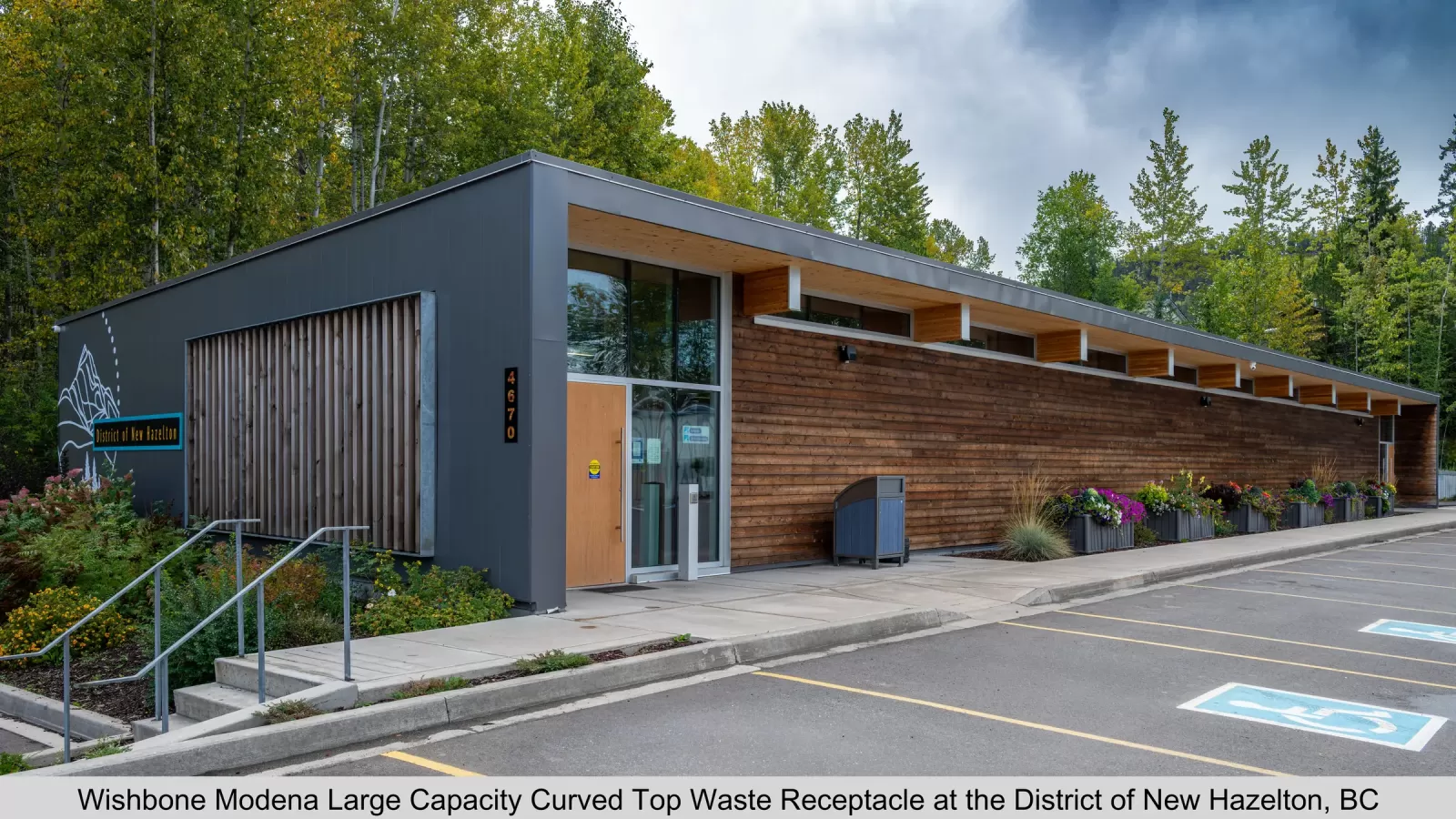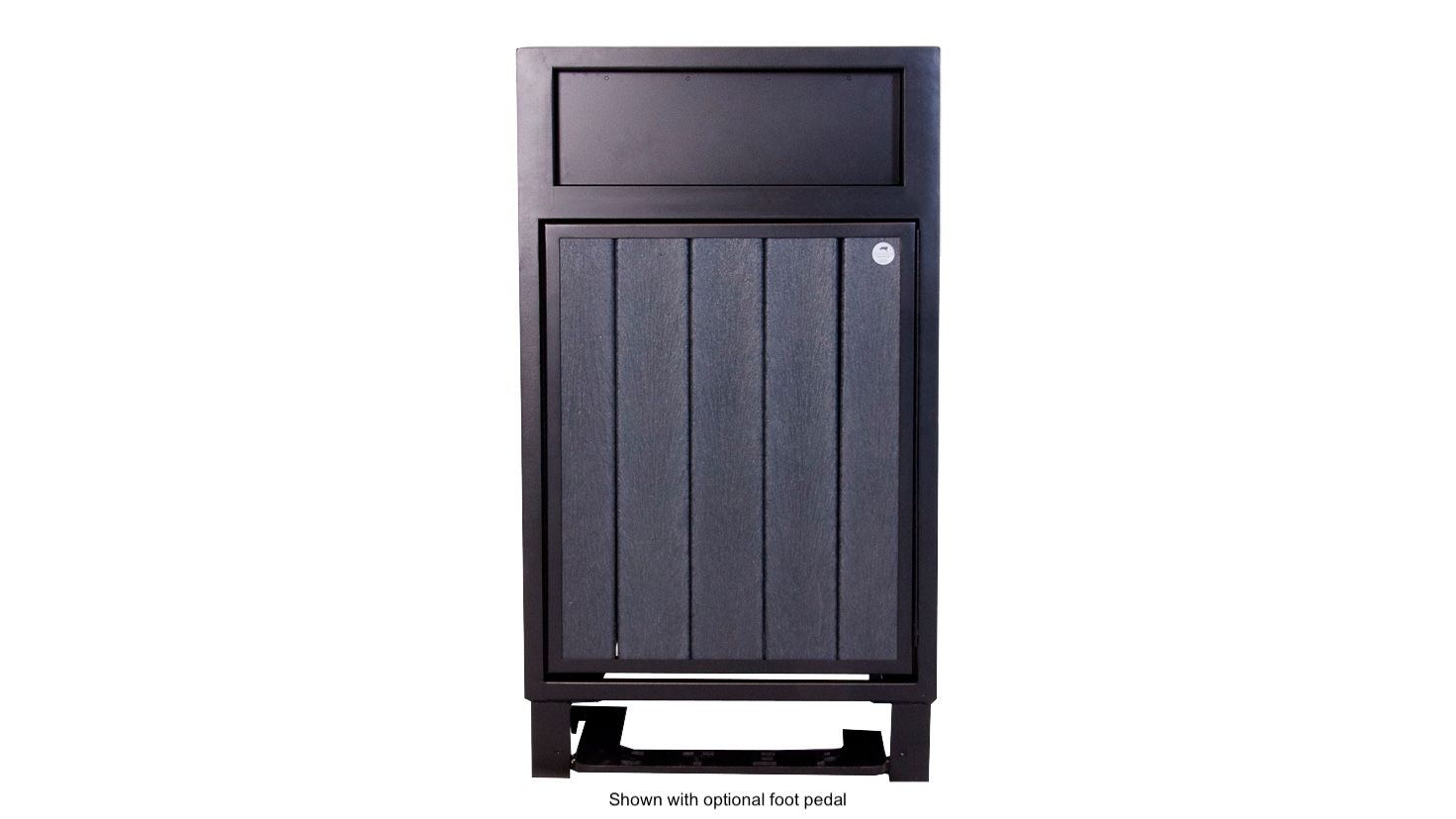 This unit came about as a request from one of our customers for a larger capacity unit that had the same look and features of the 30 gallon version. They wanted a unit that would essentially hold more waste in higher volume area’s and require less visits for emptying. The unique pedal mechanism provides a hands-free experience for the user and closes tightly enough to prevent critters such as squirrels and birds from accessing the interior. The innovative hidden front door release makes it easy for maintenance crews to empty the bag without having to carry a key or struggle with frozen locks. The receptacle opening was designed specifically with a limited 6” or 8“ opening to deter local residents from disposing of their household waste. The sloping top design prevents people from placing garbage on top and also diverts water away from the interior. Stylish, durable, and functional, this model looks great alongside the Modena Park Bench or Straight bench. Matching Modena recycling stations also available.