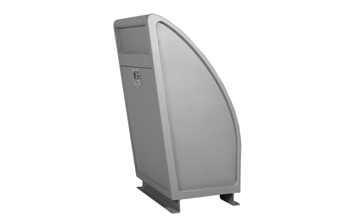 The TENAJ waste receptacle was created to compliment our very popular TENAJ park benches and bike racks. The futuristic curved design captures the same look and feel of the series but does not compromise the functionality of the receptacle. The front loading door was the challenge and our design team as always came up with a very innovative solution. Rather than have the loading door hinges on the side, they were placed on the bottom allowing the door to pull forward. The liner was then mounted on the door. As it opens it also shifts the waste forward making it easier to remove and replace the garbage bag. The front-facing overhang of the unit deflects water and makes it difficult for animals and birds to access the inside. This waste receptacle has a relatively small foot print making it ideal areas with space constraints.