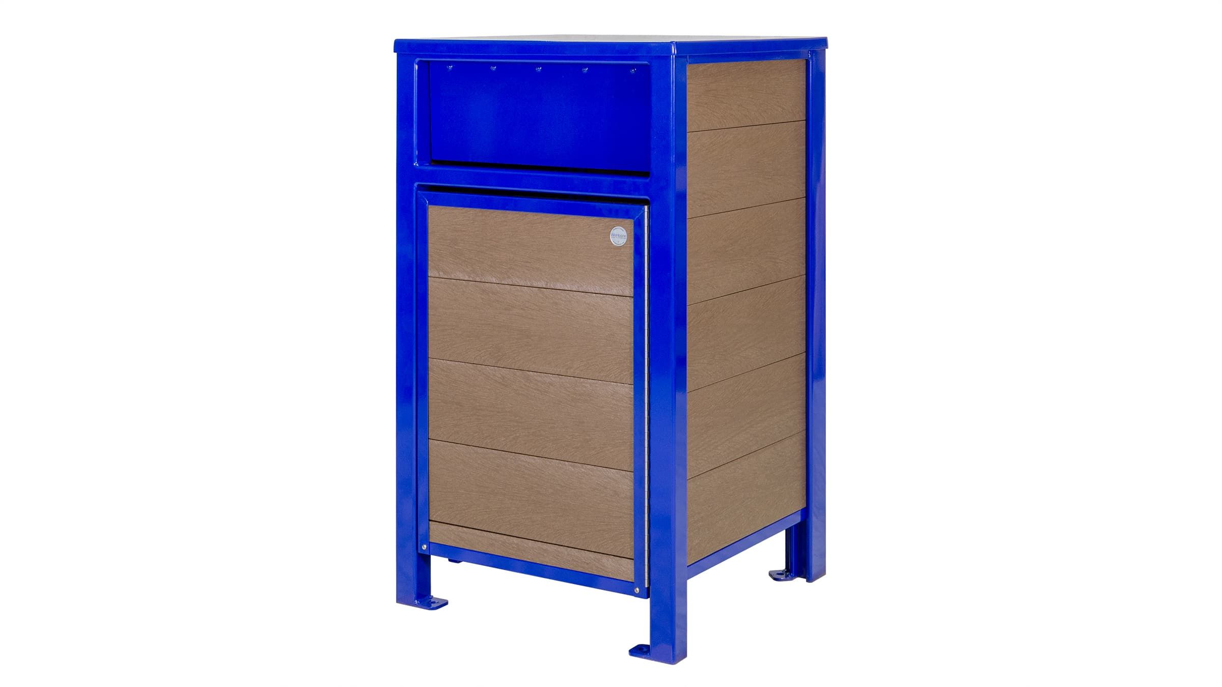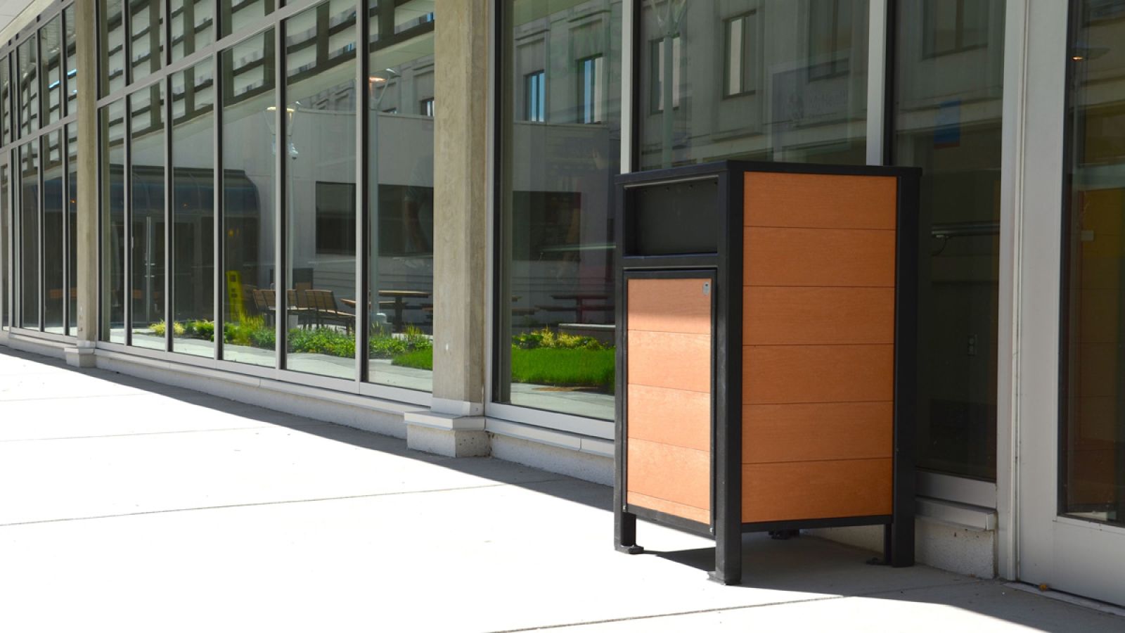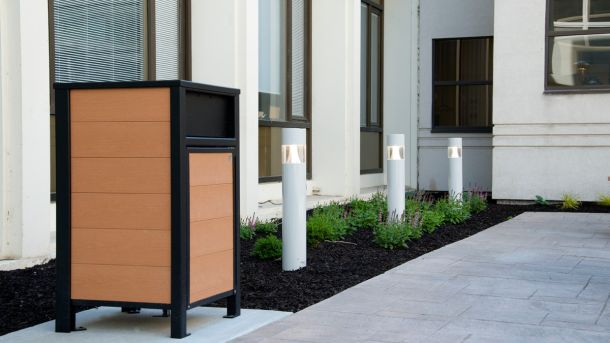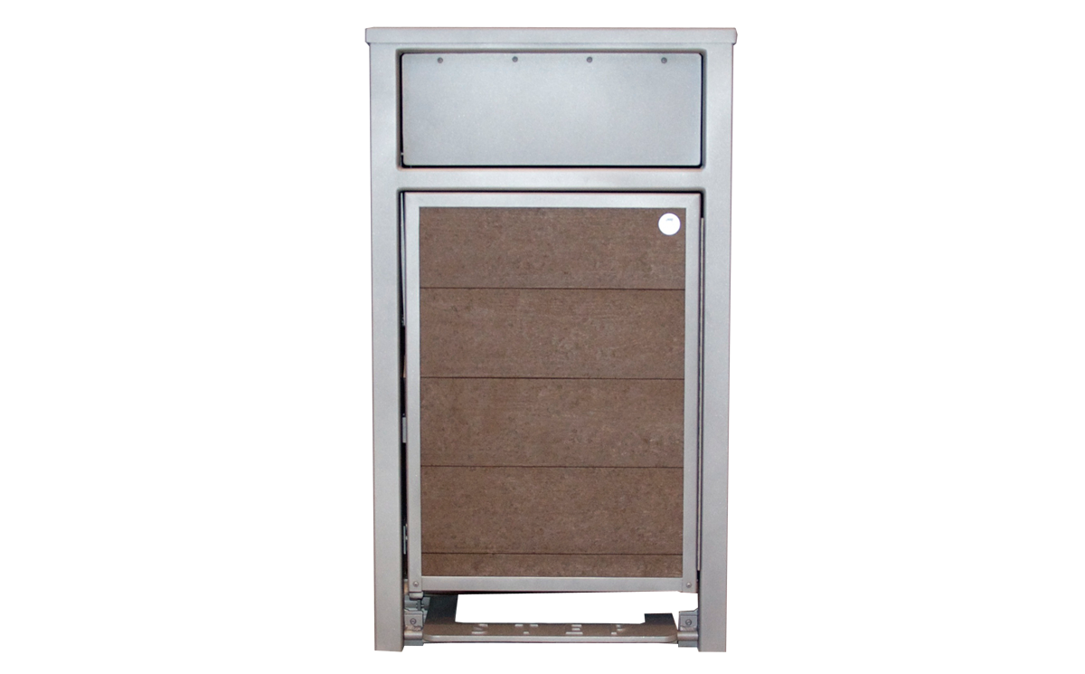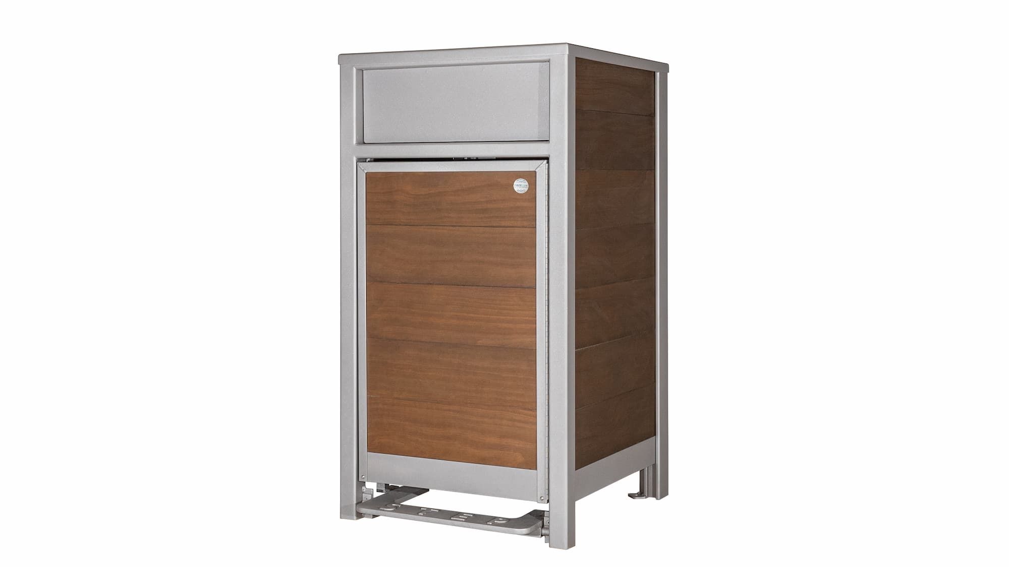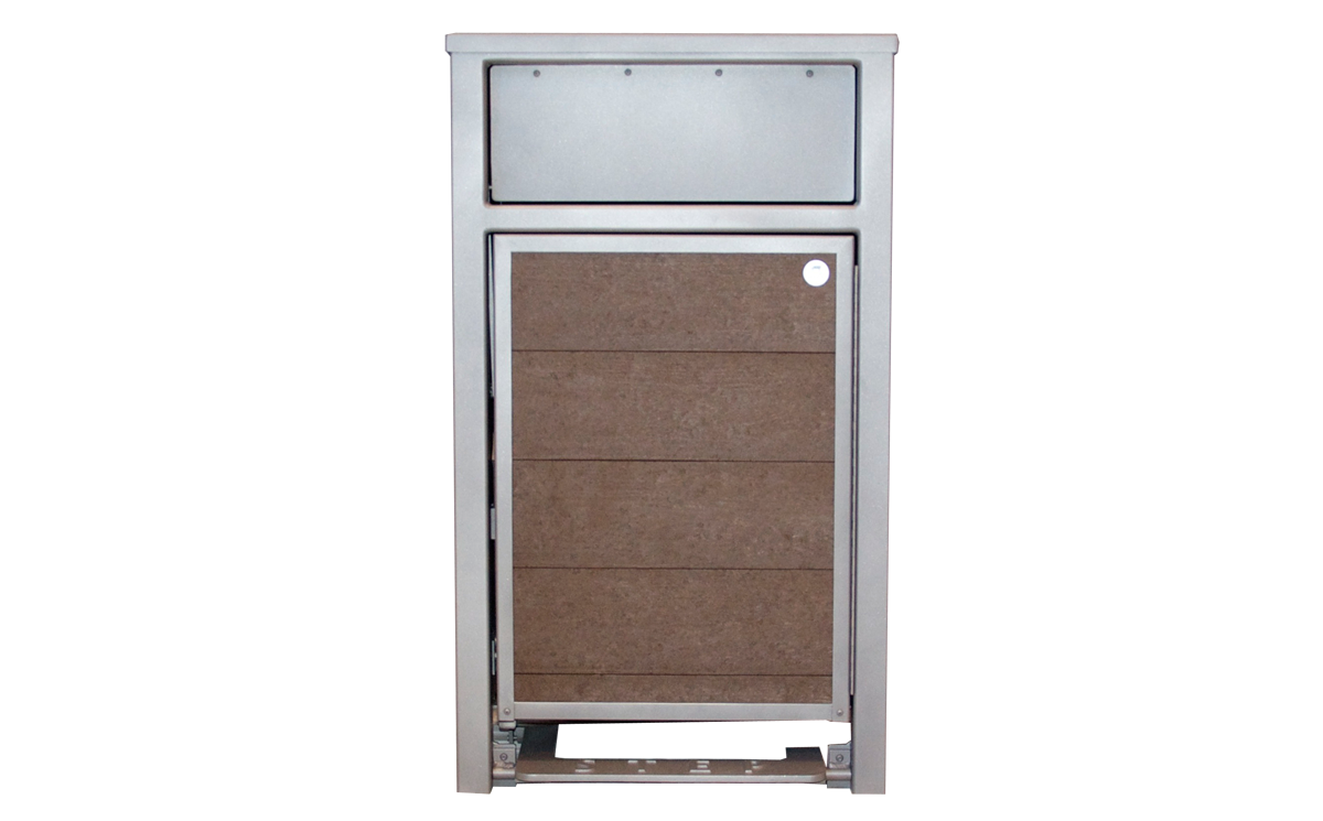 Class-leading design combined with affordability and functionality make the Urban Form Waste Receptacle a must-have to enhance any outdoor setting. Like the rest of the Urban Form Series, the horizontal lumber orientation and minimalist look match well with modern architectural elements. Innovative features such as the keyless hidden door latch system make emptying and cleaning a breeze for any maintenance worker. Minimal fasteners and clever design mean that the recycled plastic boards can be easily replaced if damaged. The 8” opening helps deter locals from emptying their household waste and keeps out water and critters. Available with or without a foot operated pedal.