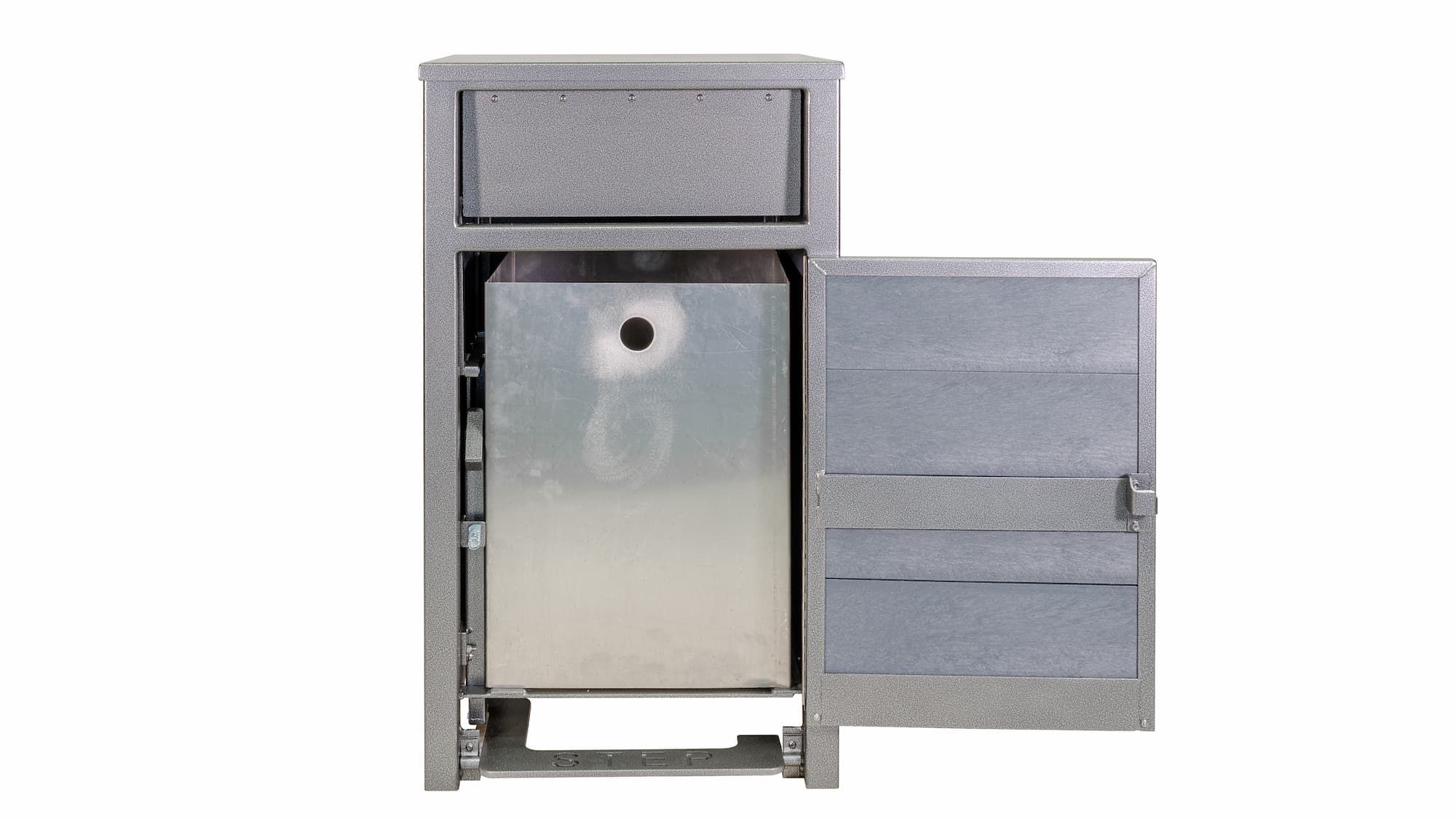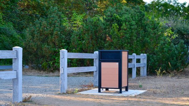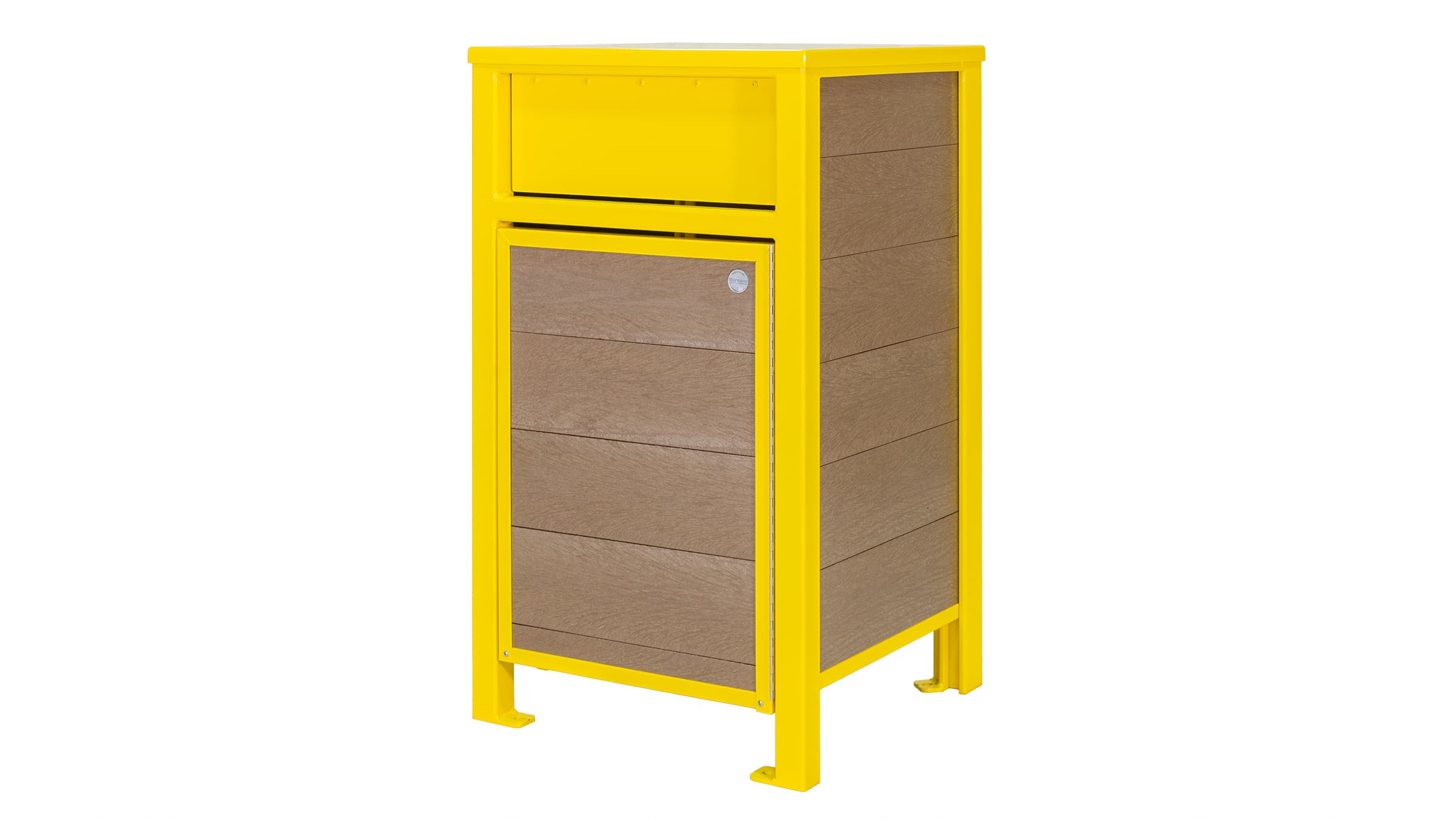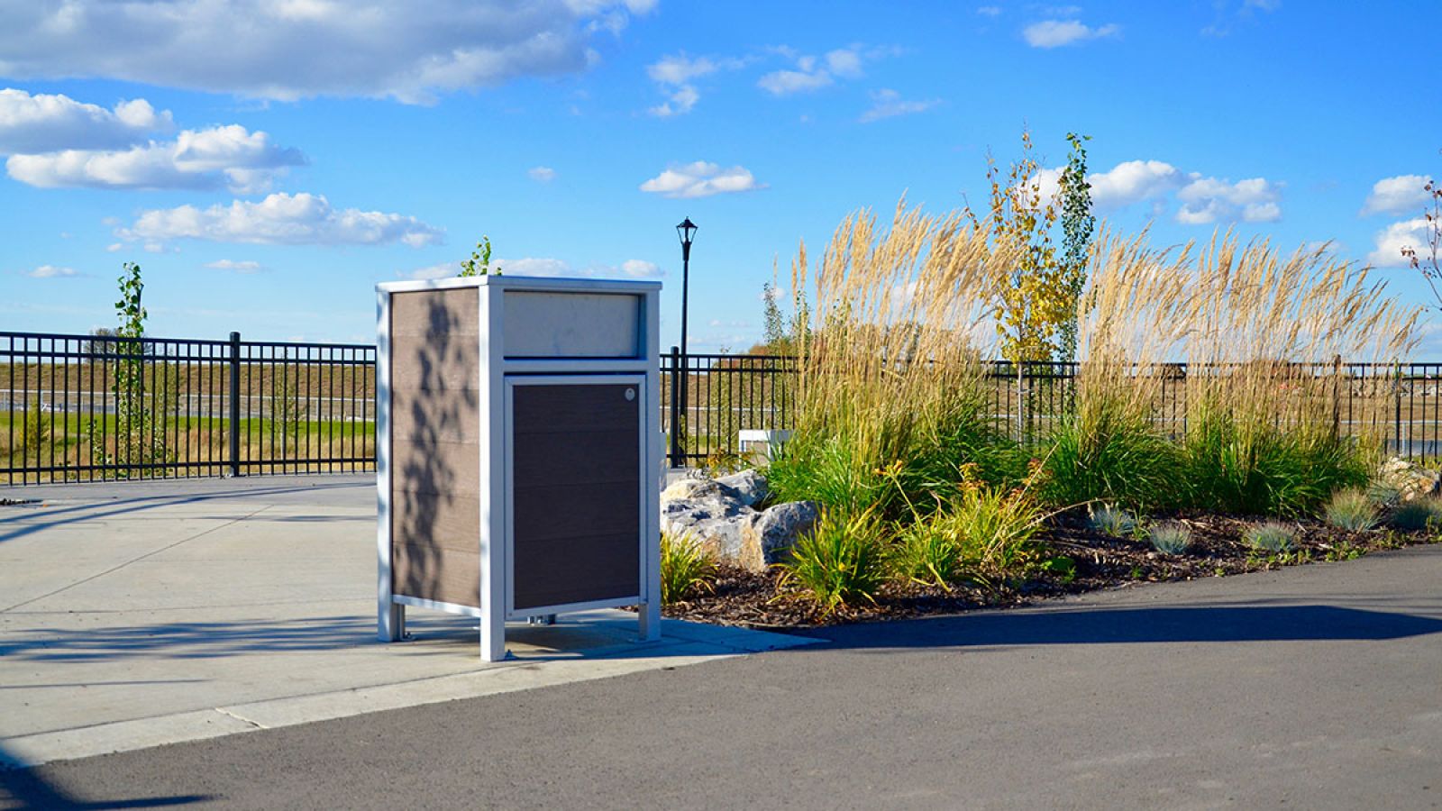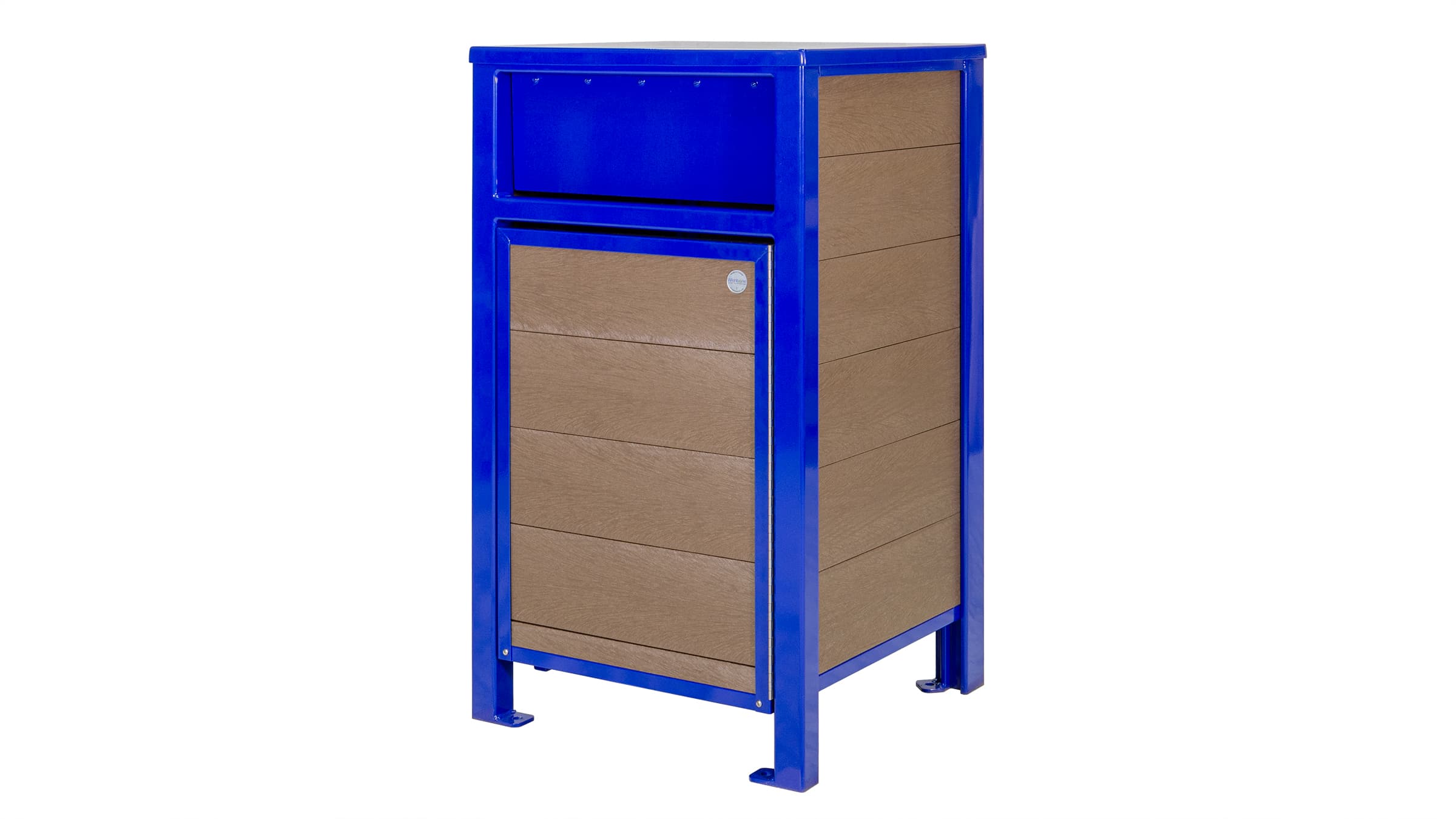 Class-leading design combined with affordability and functionality make the Urban Form Waste Receptacle a must-have to enhance any outdoor setting. Like the rest of the Urban Form Series, the horizontal lumber orientation and minimalist look match well with modern architectural elements. Innovative features such as the keyless hidden door latch system make emptying and cleaning a breeze for any maintenance worker. Minimal fasteners and clever design mean that the recycled plastic boards can be easily replaced if damaged. The 8” opening helps deter locals from emptying their household waste and keeps out water and critters. Available with or without a foot operated pedal.