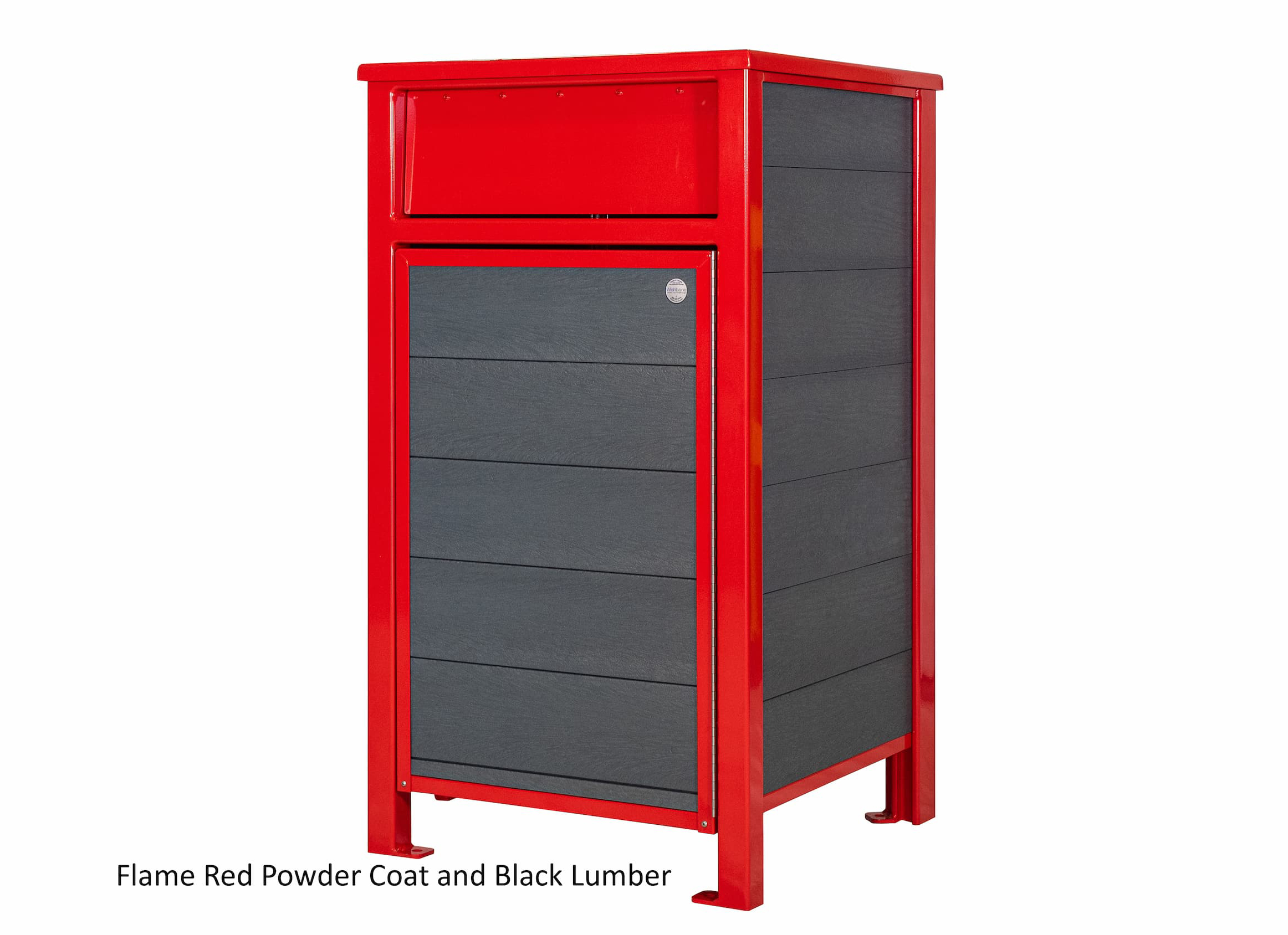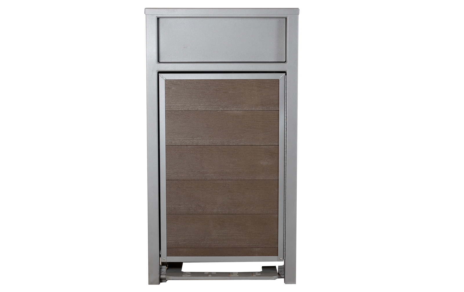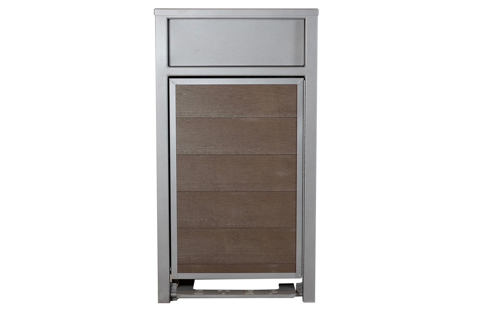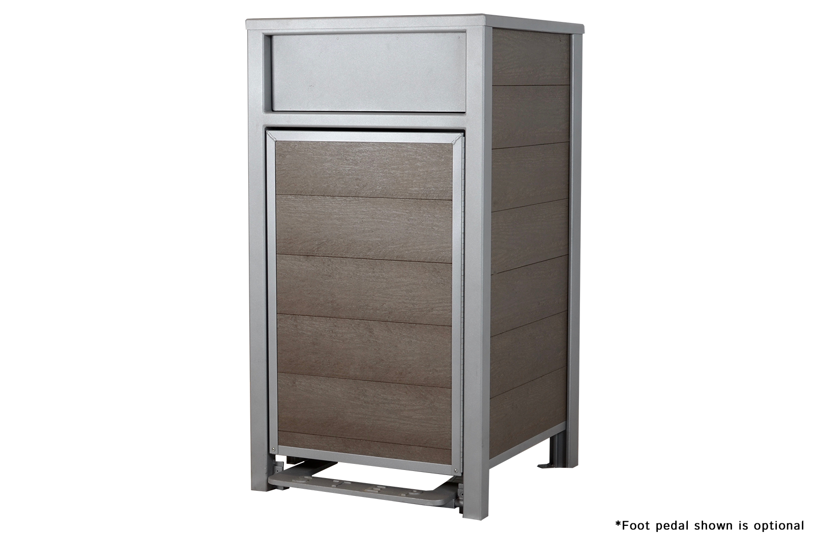 Class-leading design combined with affordability, functionality and now large capacity make this Waste Receptacle a must-have in circumstances where there is need for increased waste collection. The 55 gallon capacity allows for increased volume while saving time and money in handling the bags less frequently. Like the rest of the Urban Form Series, the horizontal lumber orientation and minimalist look match well with modern architectural elements. Innovative features such as the keyless hidden door latch system make emptying and cleaning a breeze for any maintenance worker. Minimal fasteners and clever design mean that the recycled plastic boards can be easily replaced if damaged. The 8” opening helps deter locals from emptying their household waste and keeps out water and critters.  Available with or without a foot operated pedal.