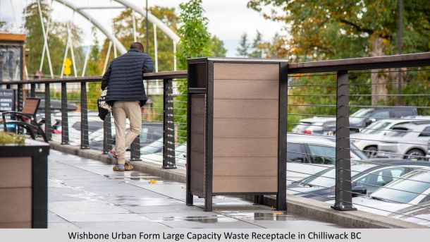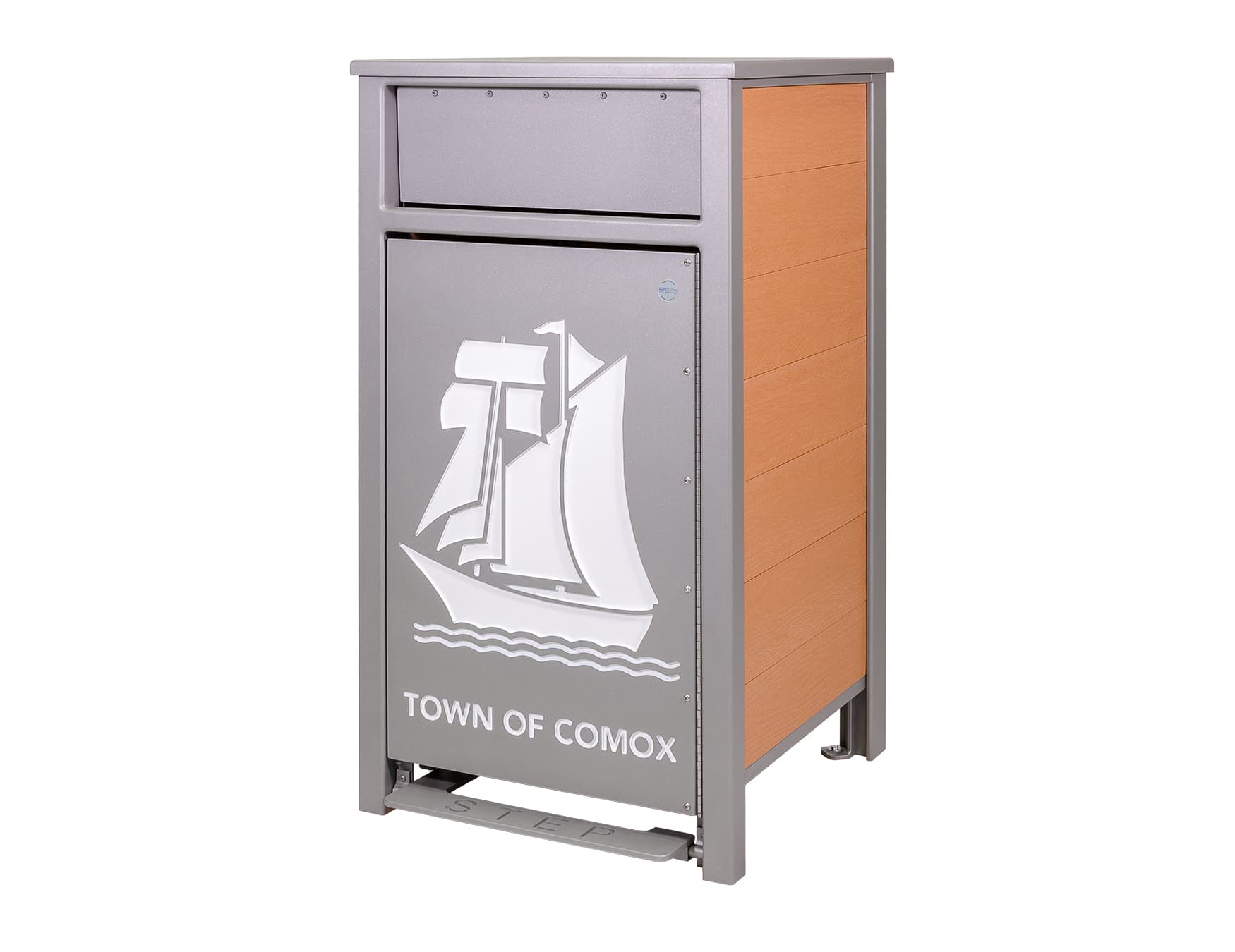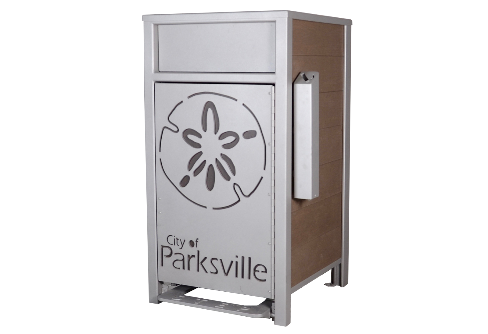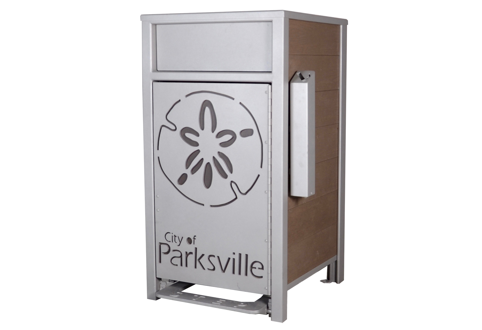 Class-leading design combined with affordability, functionality and now large capacity make this Waste Receptacle a must-have in circumstances where there is need for increased waste collection. The 55 gallon capacity allows for increased volume while saving time and money in handling the bags less frequently. Like the rest of the Urban Form Series, the horizontal lumber orientation and minimalist look match well with modern architectural elements. Innovative features such as the keyless hidden door latch system make emptying and cleaning a breeze for any maintenance worker. Minimal fasteners and clever design mean that the recycled plastic boards can be easily replaced if damaged. The 8” opening helps deter locals from emptying their household waste and keeps out water and critters.  Available with or without a foot operated pedal.