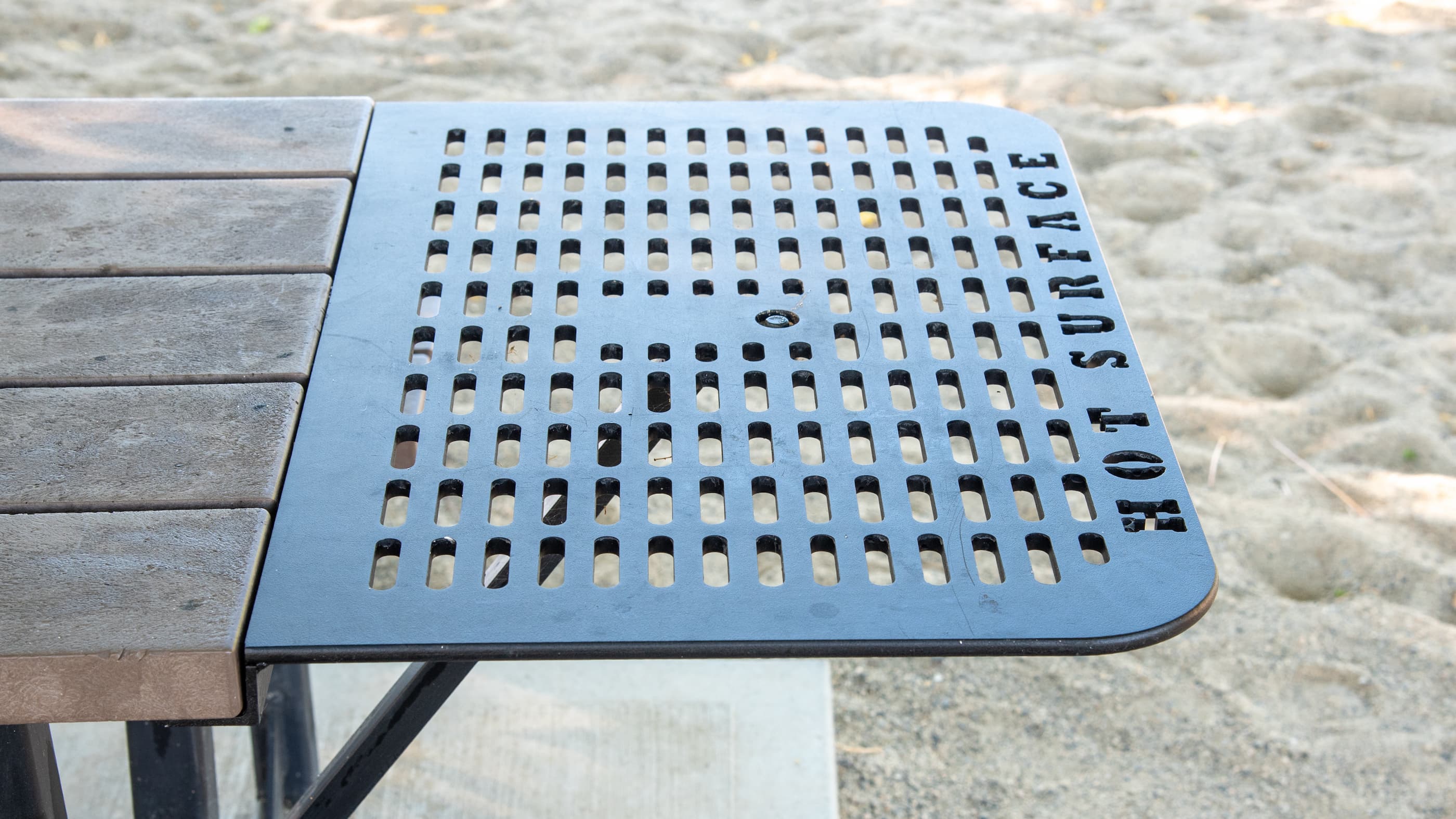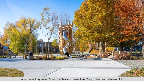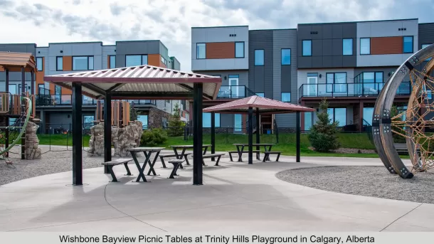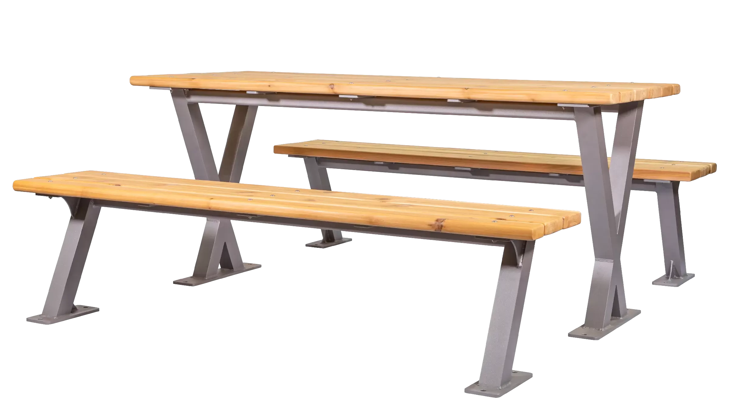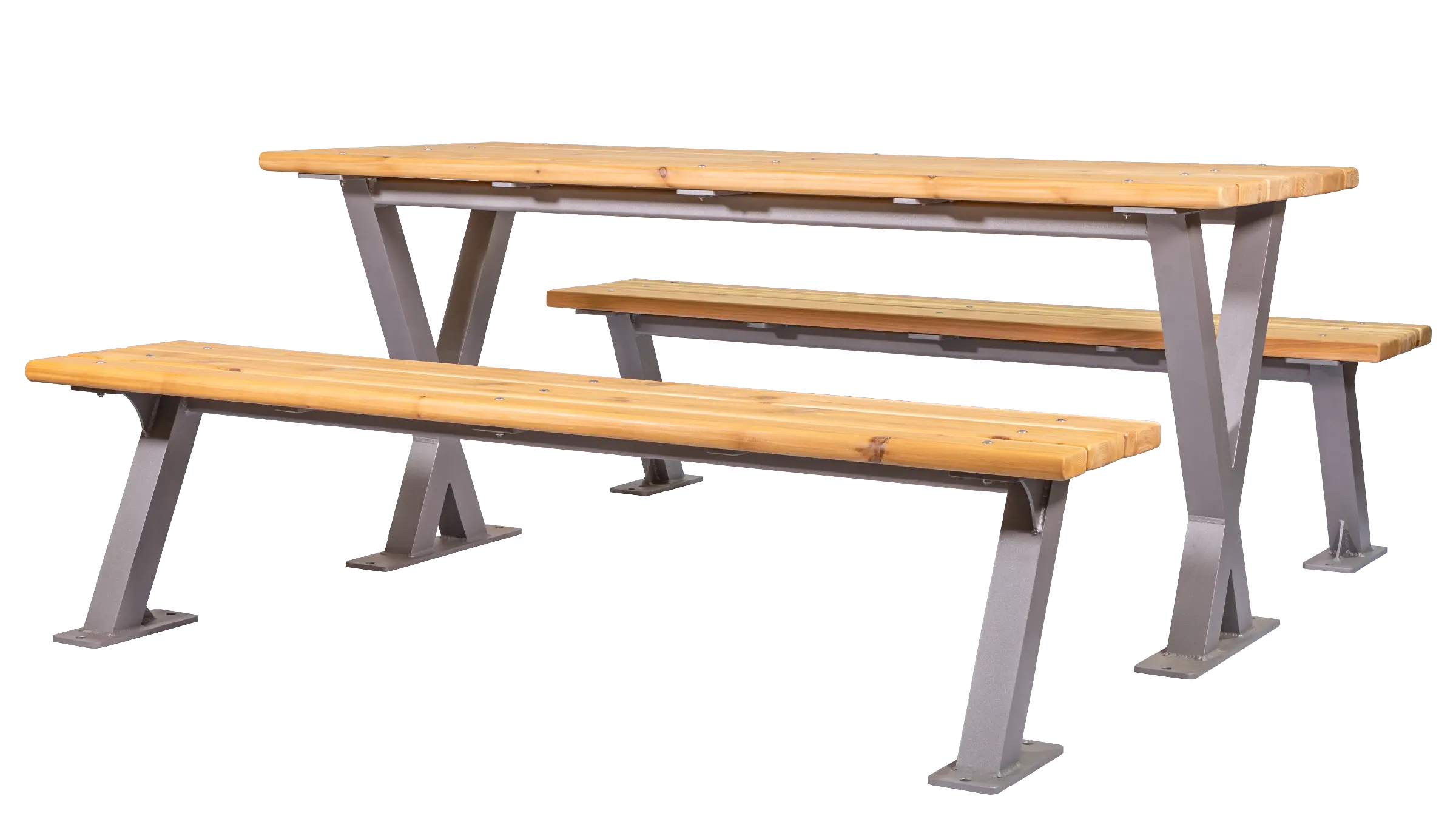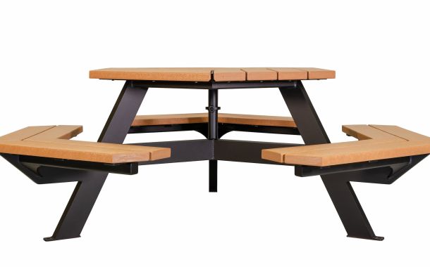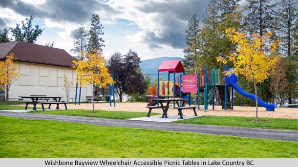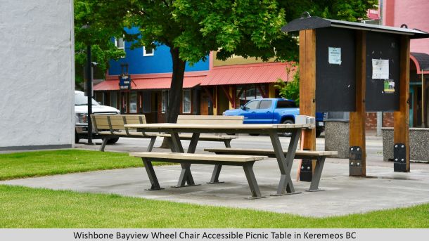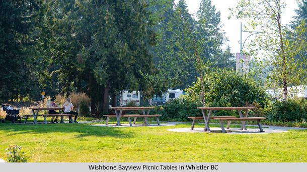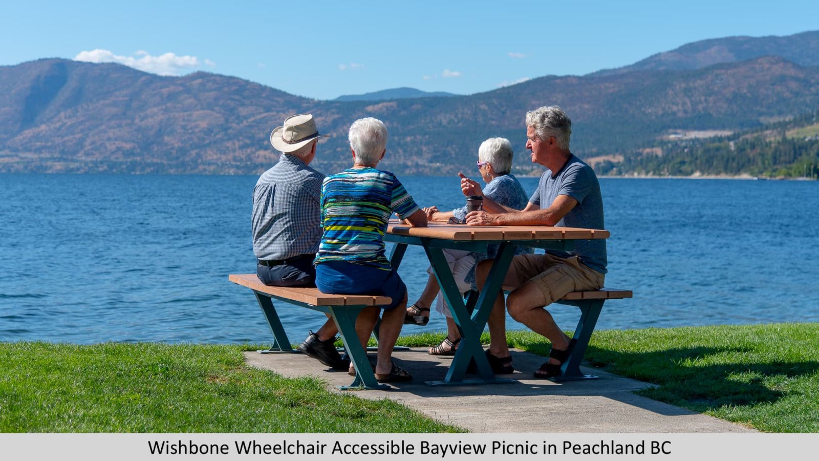 Aesthetically pleasing and extremely functional, the Bayview Picnic Table was designed to match our popular Bayview Park Bench. The goal with this model was to address the shortcomings of traditional picnic tables such as accessibility, comfort, and seat depth. To increase accessibility, the feet and structural elements are angled away from the user meaning less bumped knees and awkward entries. Bull-nosed boards on the tabletop and seat soften the edges and allow a person to comfortably lean against the table edge as a backrest. The Bayview Picnic Table also has a significantly wider seat depth to accommodate a variety of patrons.   It can be Wheelchair accessible with either a table top extension, or by custom building it as a one-sided picnic table with no bench on one side.  This design has all the low- maintenance features inherent to our products: powder coated aluminum frame, 100% recycled plastic slats, and stainless-steel fasteners.