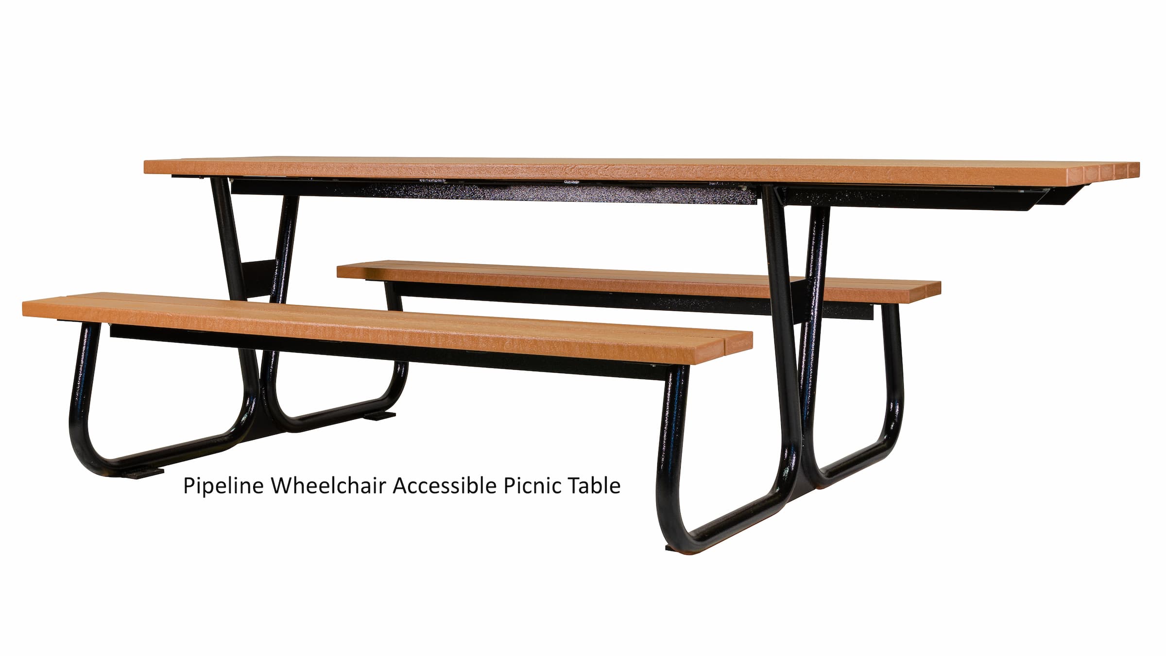 As an innovator in this area, we have overcome this challenge and the Pipeline Picnic Table now effectively bridges that gap. It maintains that classic style, providing a uniform consistent look in the municipal setting while maximizing the strength and low maintenance virtues of aluminum and recycled plastic lumber.